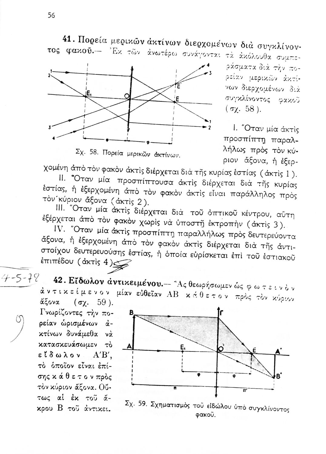 Σχολικό εγχειρίδιο Φυσικής Πειραματικής Ε΄ και ΣΤ΄ Γυμνασίου που εστιάζει στα φυσικά φαινόμενα της οπτικής, του μαγνητισμού, του ηλεκτρισμού, και της πυρηνικής φυσικής. Φέρει το σύμβολο της δικτατορίας.