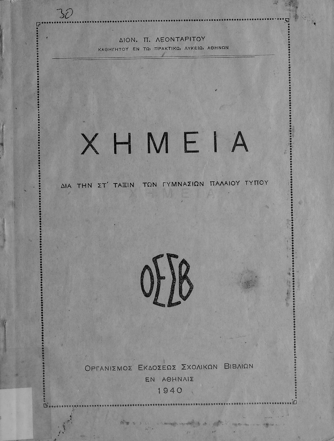 Τίτλος: Χημεία δια την ΣΤ΄ τάξιν των Γυμνασίων παλαιού τύπoυ
