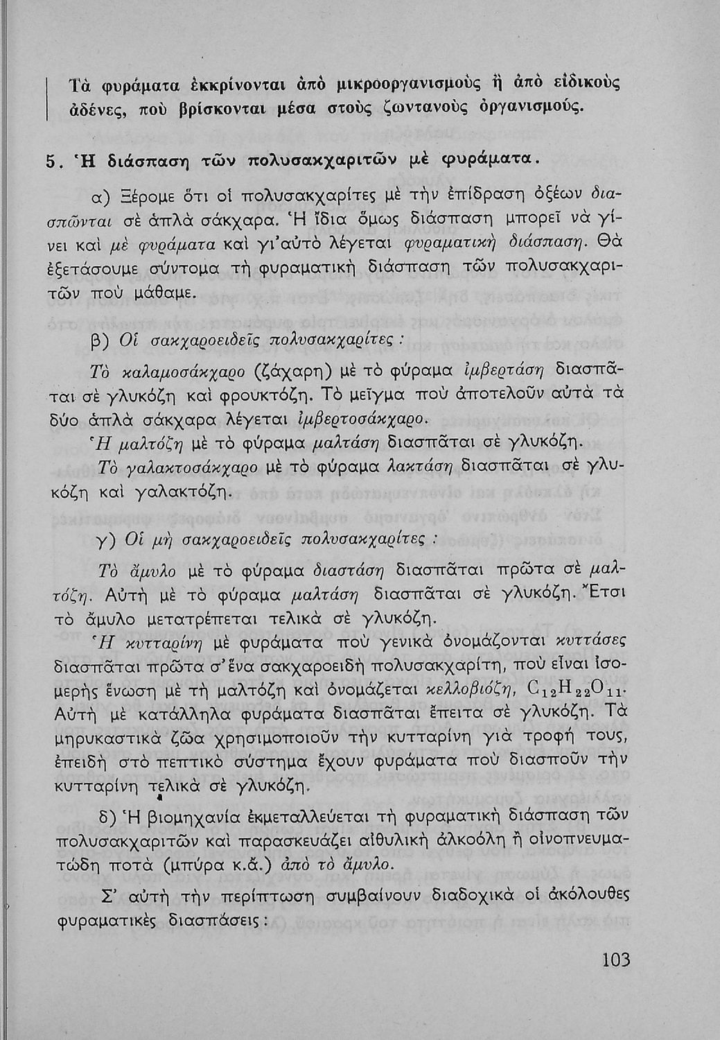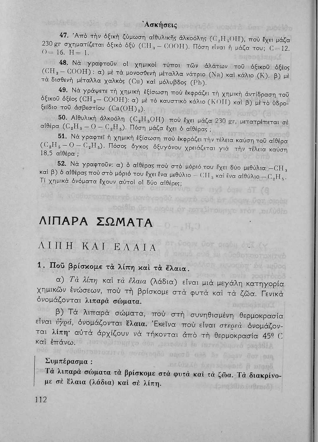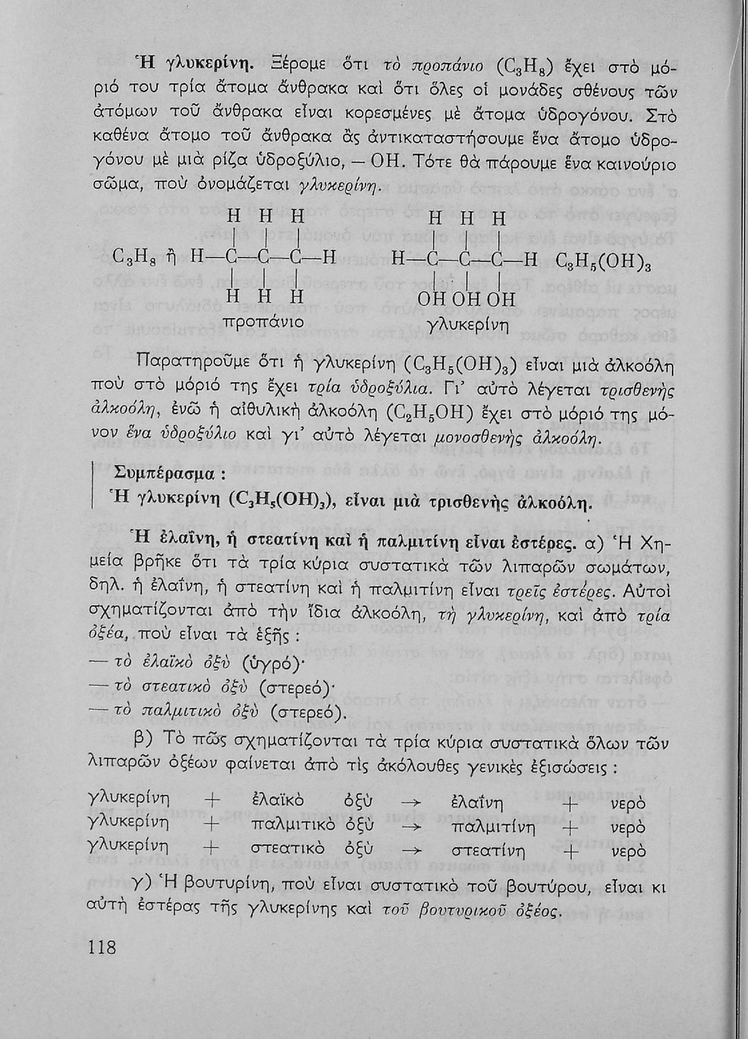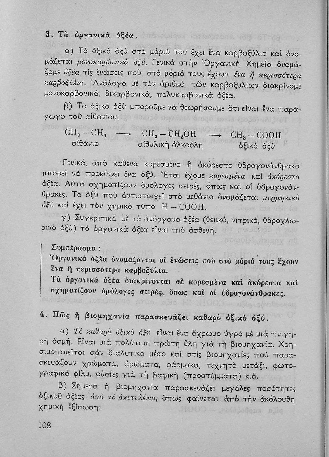 Σχολικό εγχειρίδιο Χημείας Γ΄ Γυμνασίου που περιέχει εισαγωγή στην οργανική χημεία και εστιάζει στους υδρογονάνθρακες, τα σάκχαρα και τα λιπαρά σώματα. Φέρει το σύμβολο της δικτατορίας.