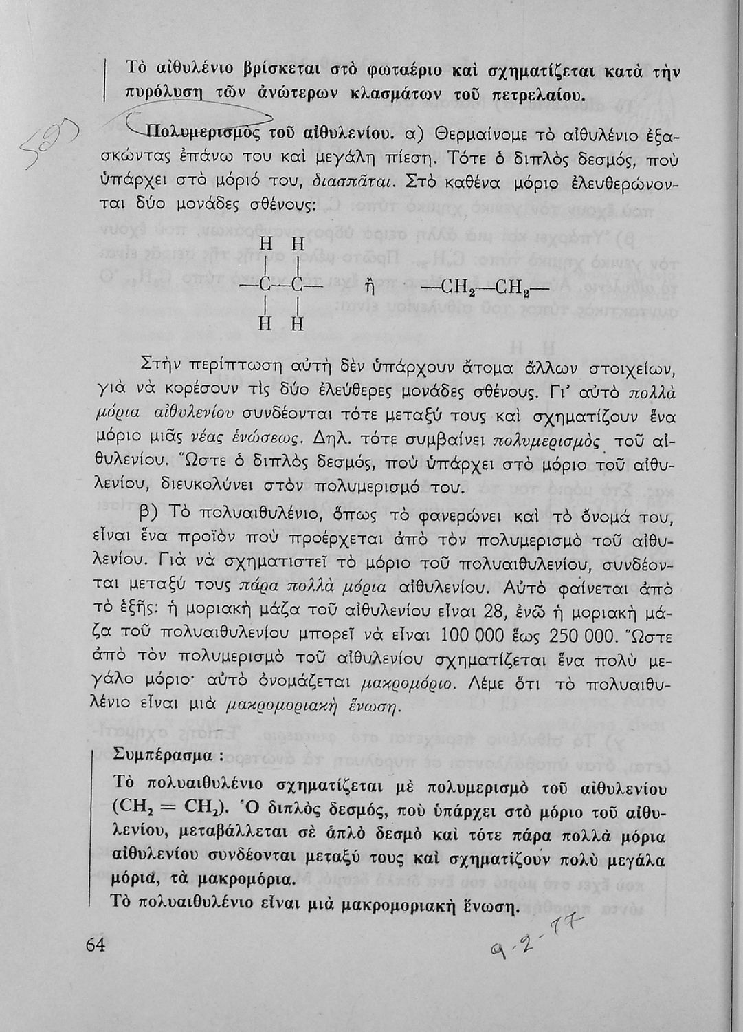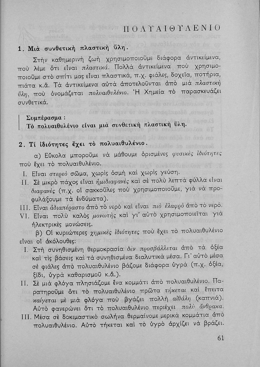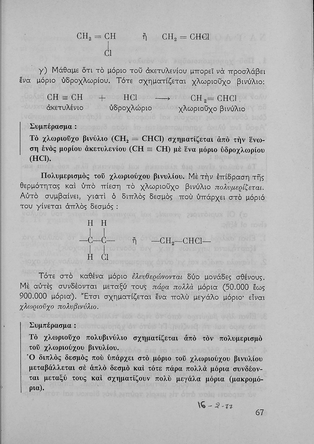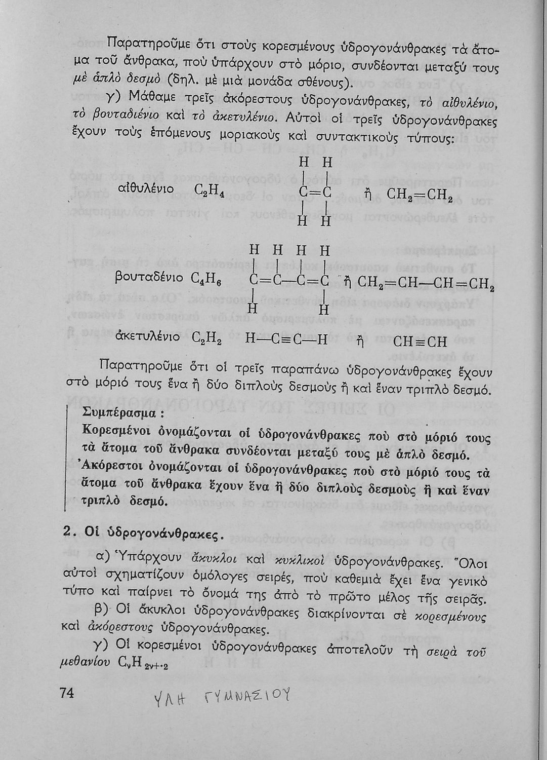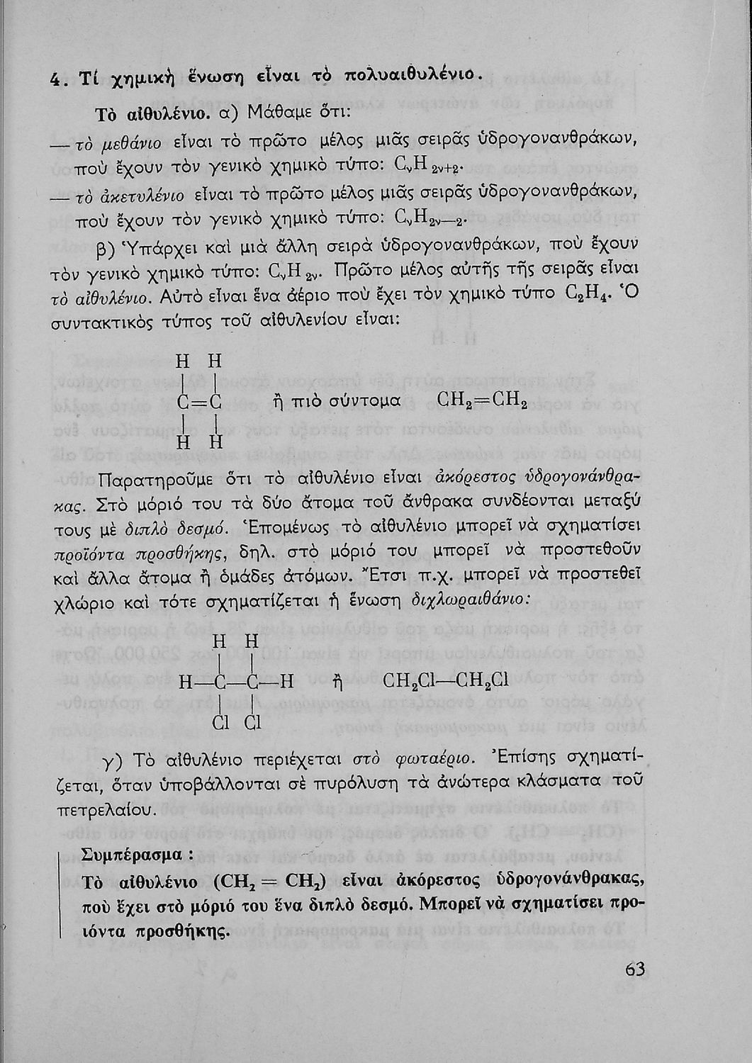 Βαθμίδα εκπαίδευσης: Δευτεροβάθμια Τάξη: Γ' Γυμνασίου Μάθημα: Χημεία Γλώσσα: Απλή καθαρεύουσα Παρουσίαση περιεχομένου: Σχολικό εγχειρίδιο Χημείας Γ΄ Γυμνασίου που περιέχει εισαγωγή στην οργανική χημεία και εστιάζει στους υδρογονάνθρακες, τα σάκχαρα και τα λιπαρά σώματα. |