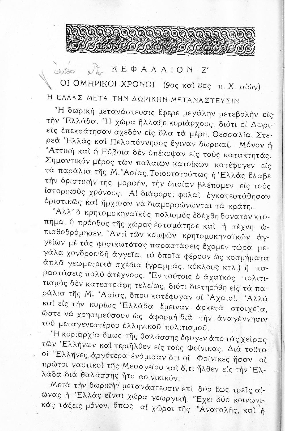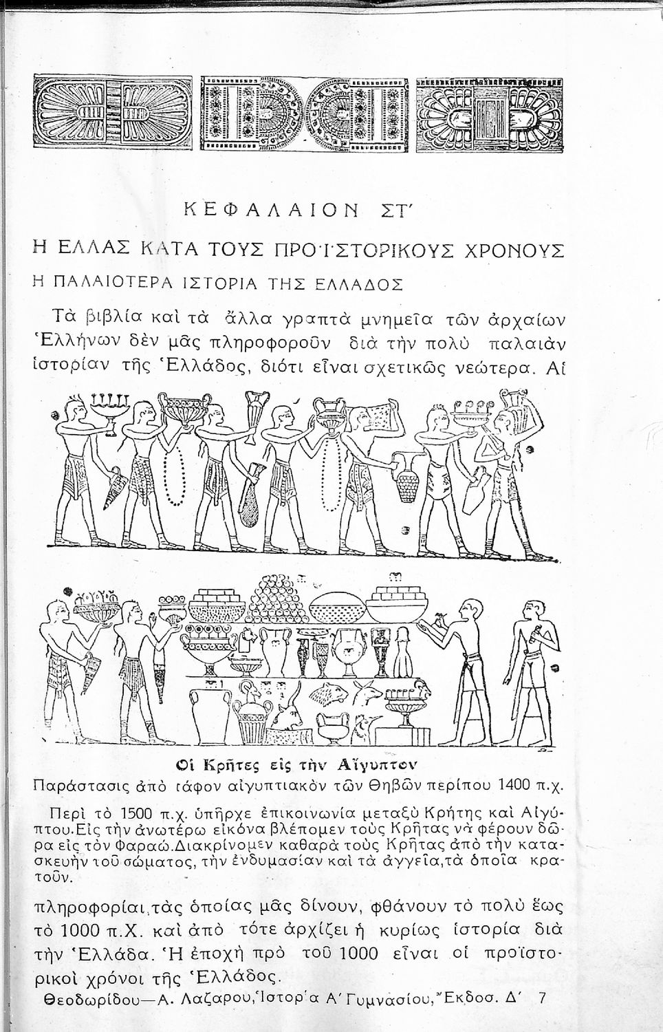 Σχολικό εγχειρίδιο Ιστορίας Α΄ Γυμνασίου που καλύπτει την περίοδο από τους προϊστορικούς χρόνους ως τις μεταρρυθμίσεις του Κλεισθένη. Περιέχει και εκτενή αναφορά στην ανάπτυξη των γραμμάτων, των τεχνών και του