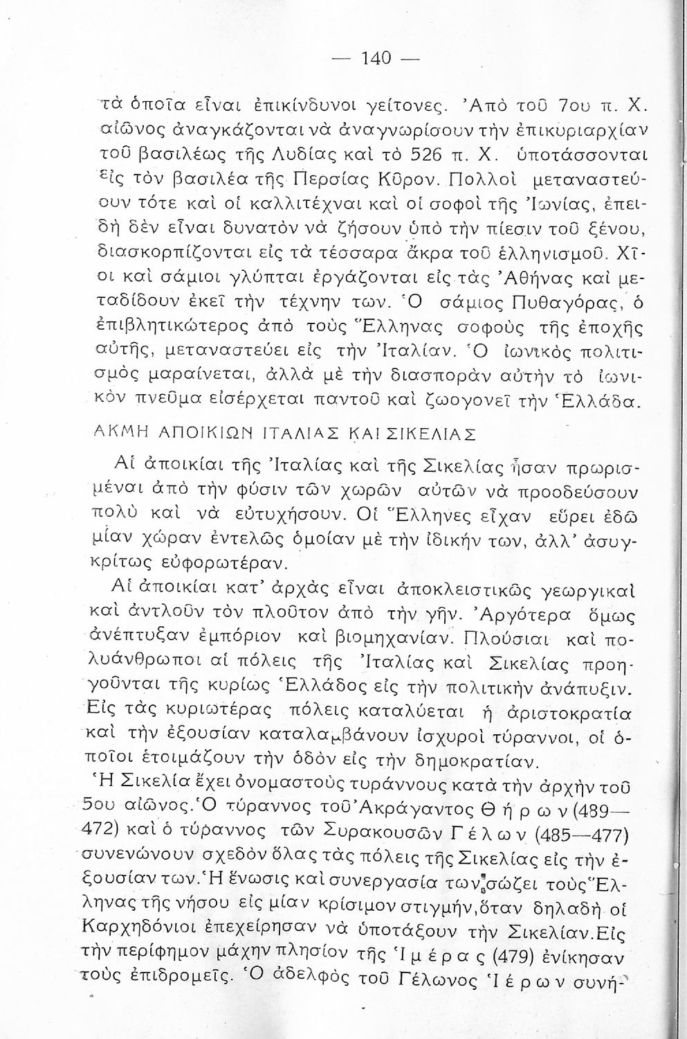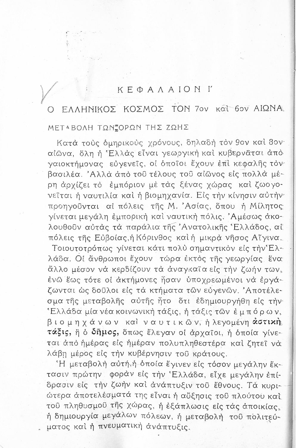 Σχολικό εγχειρίδιο Ιστορίας Α΄ Γυμνασίου που καλύπτει την περίοδο από τους προϊστορικούς χρόνους ως τις μεταρρυθμίσεις του Κλεισθένη. Περιέχει και εκτενή αναφορά στην ανάπτυξη των γραμμάτων, των τεχνών και του