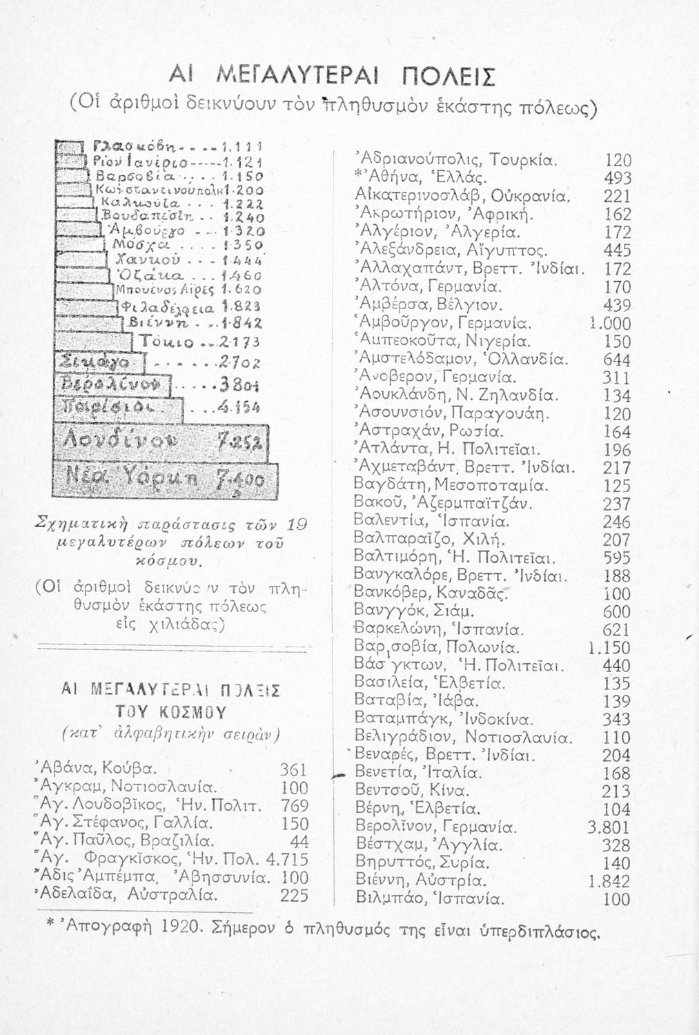 Μαθητικό βοήθημα Γεωγραφίας Ε΄ Δημοτικού που πραγματεύεται την σύσταση και δομή της Γης, τις ηπείρους πλην της Ευρώπης και τις μεγαλύτερες πληθυσμιακά πόλεις κατά το 1920. Περιέχει και συγκριτική μελέτη για ...