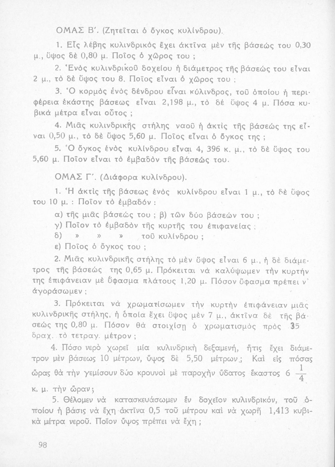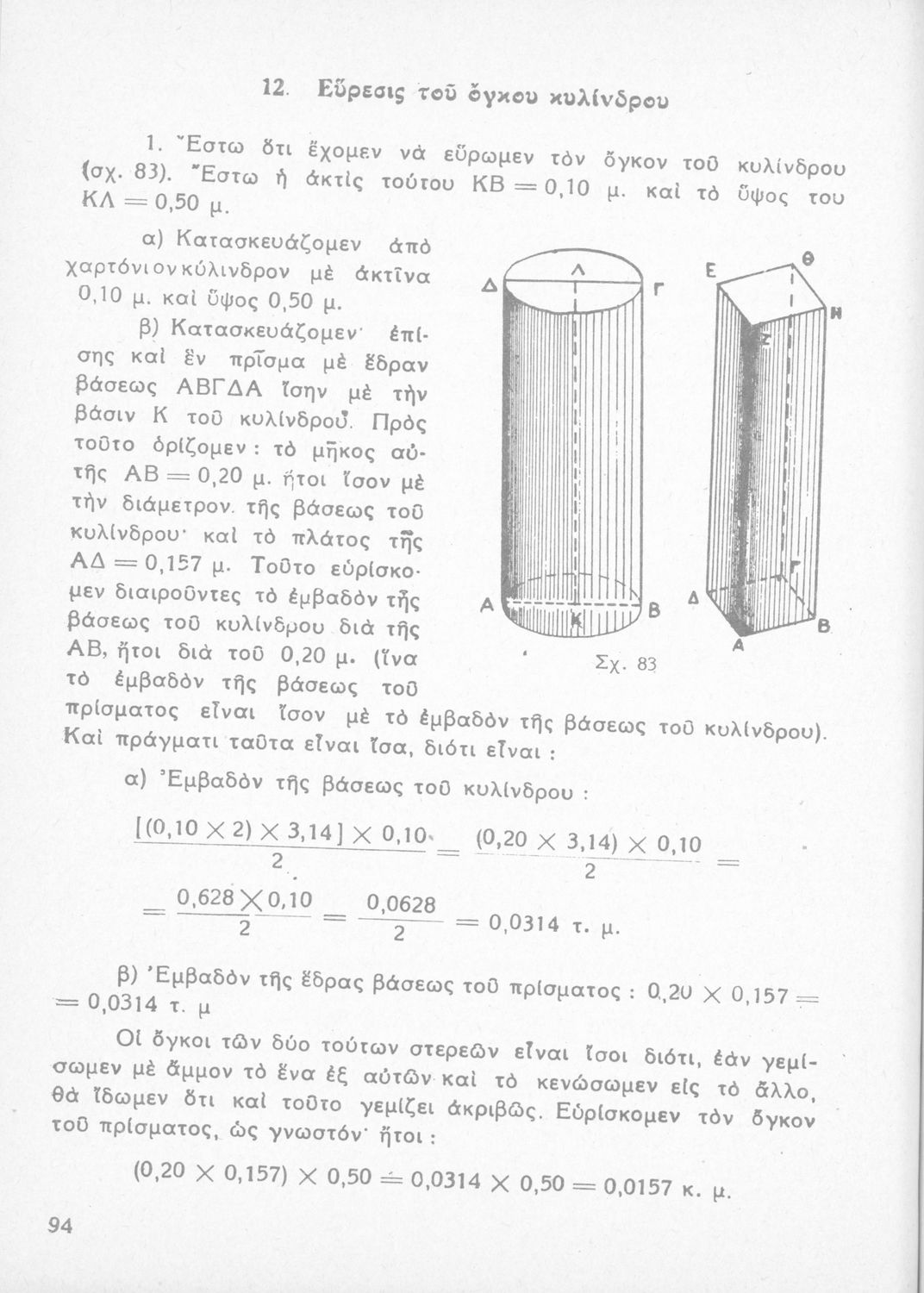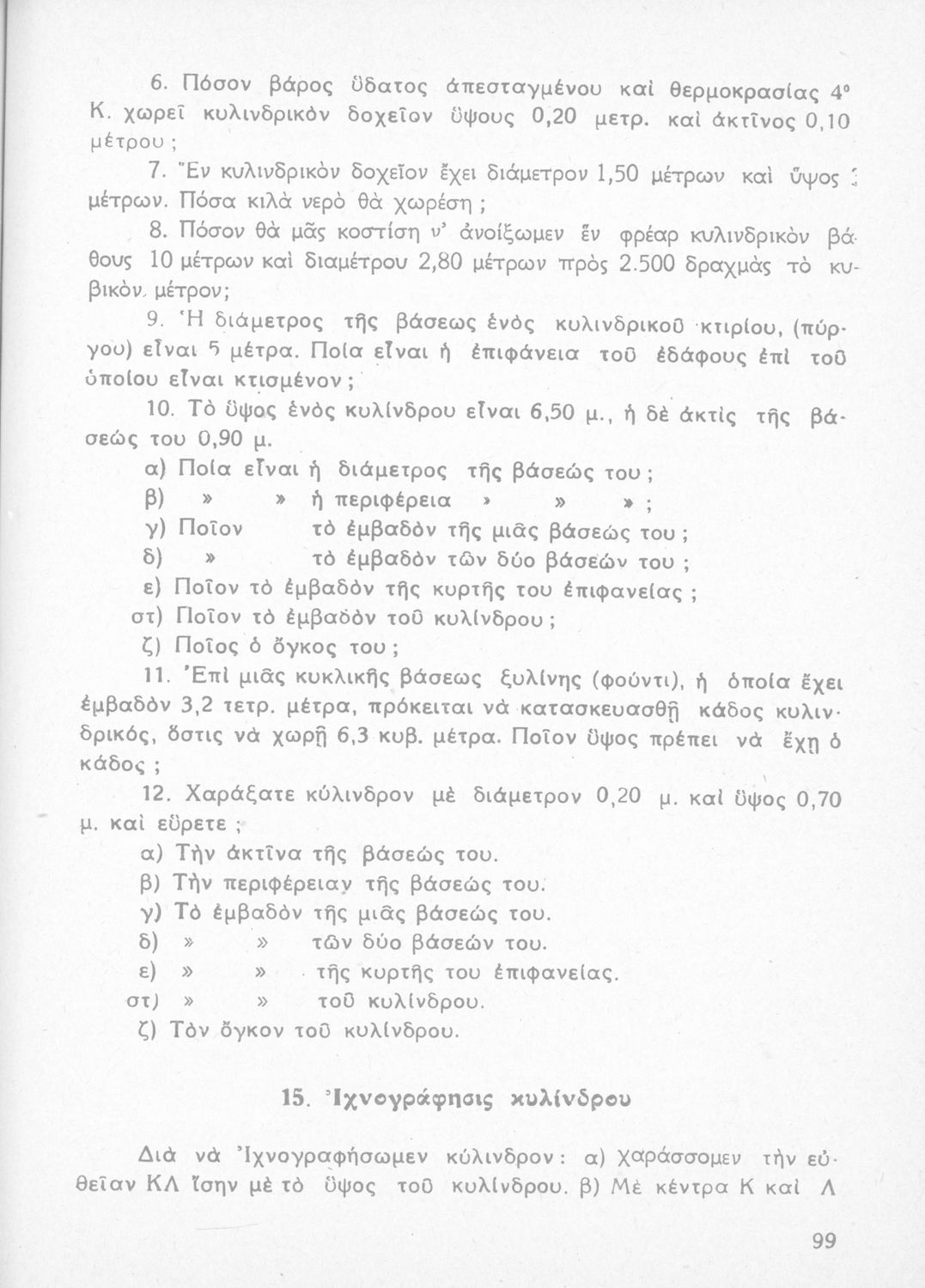 Μαθητικό βοήθημα Γεωμετρίας για τις Ε΄ και ΣΤ΄ Δημοτικού που περιλαμβάνει εικόνες, σχεδιαγράμματα και ασκήσεις. Περιέχει πίνακα με τα ειδικά βάρη διαφόρων σωμάτων.