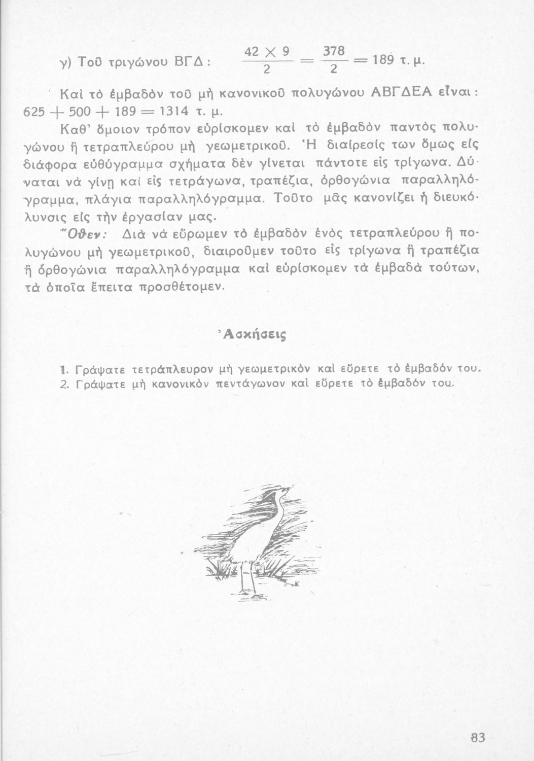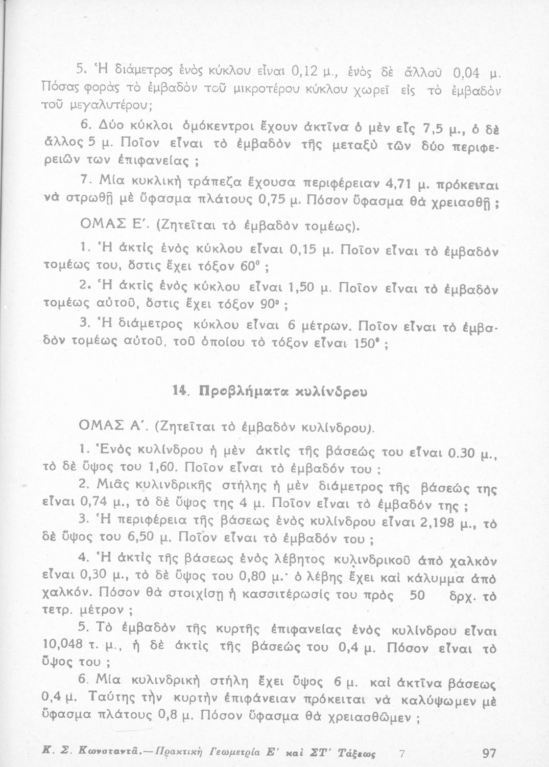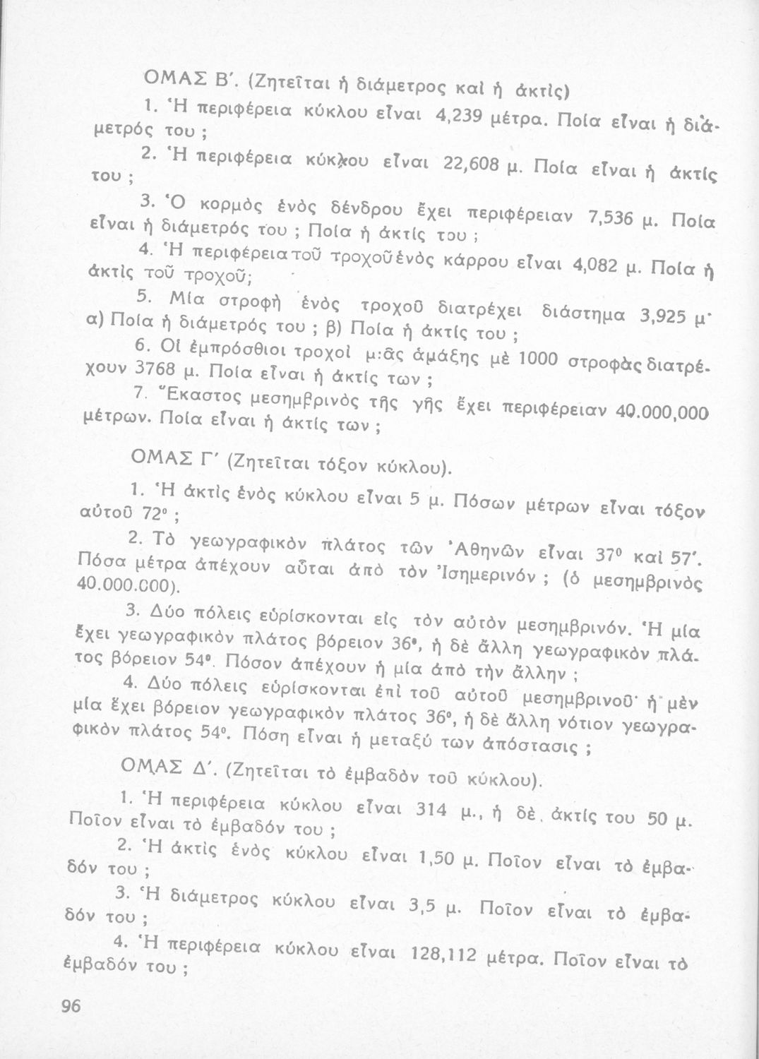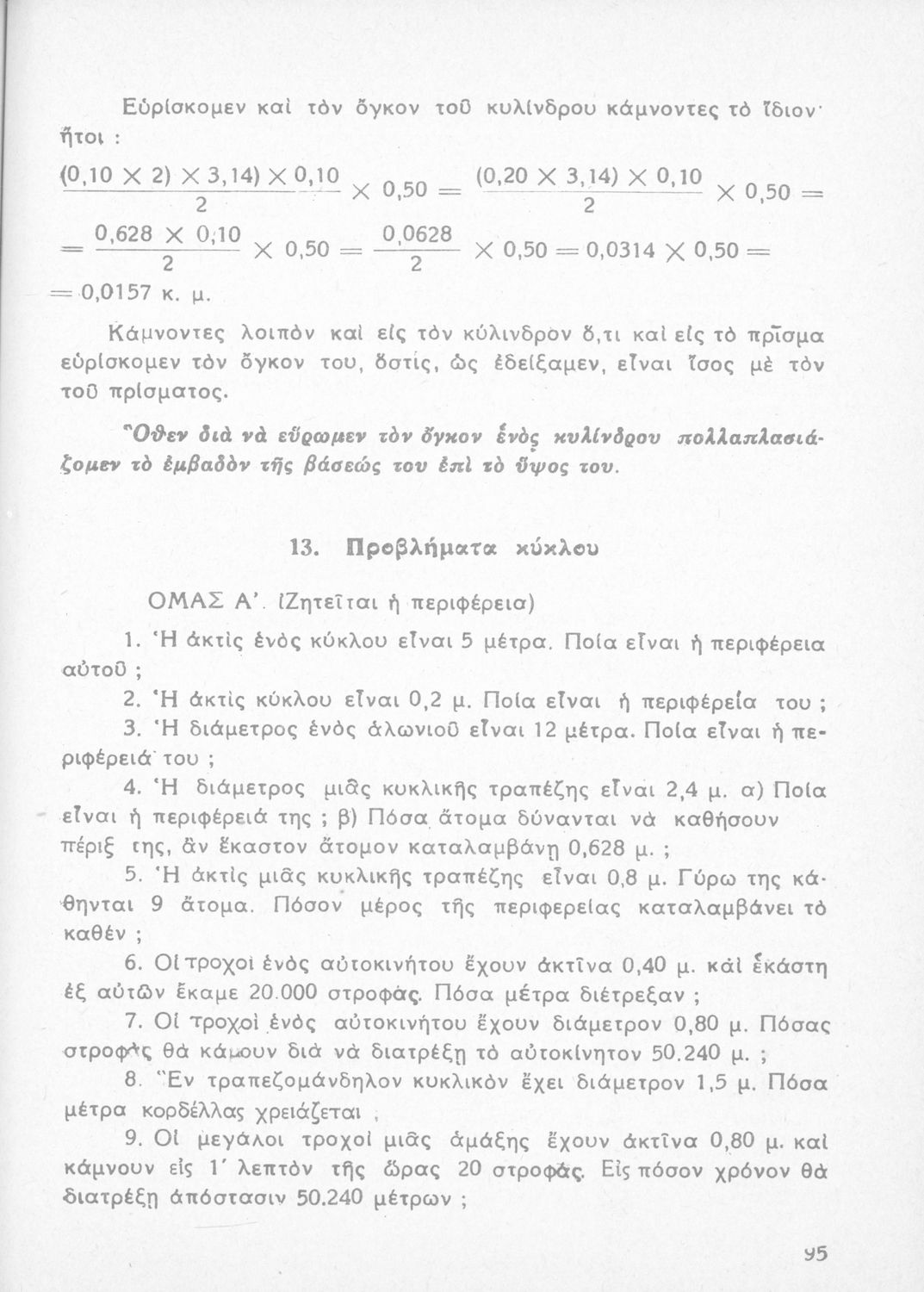 Μαθητικό βοήθημα Γεωμετρίας για τις Ε΄ και ΣΤ΄ Δημοτικού που περιλαμβάνει εικόνες, σχεδιαγράμματα και ασκήσεις. Περιέχει πίνακα με τα ειδικά βάρη διαφόρων σωμάτων.