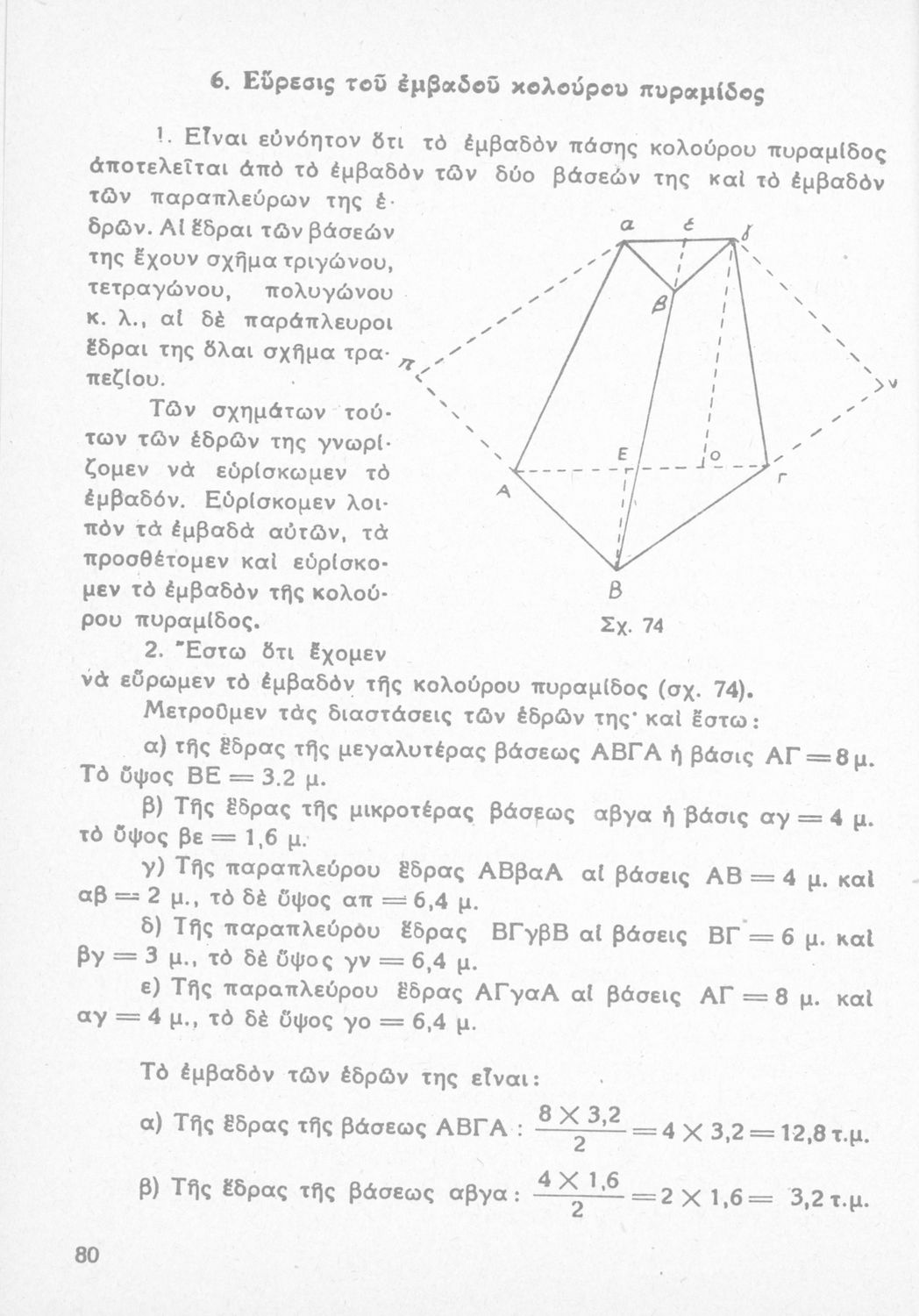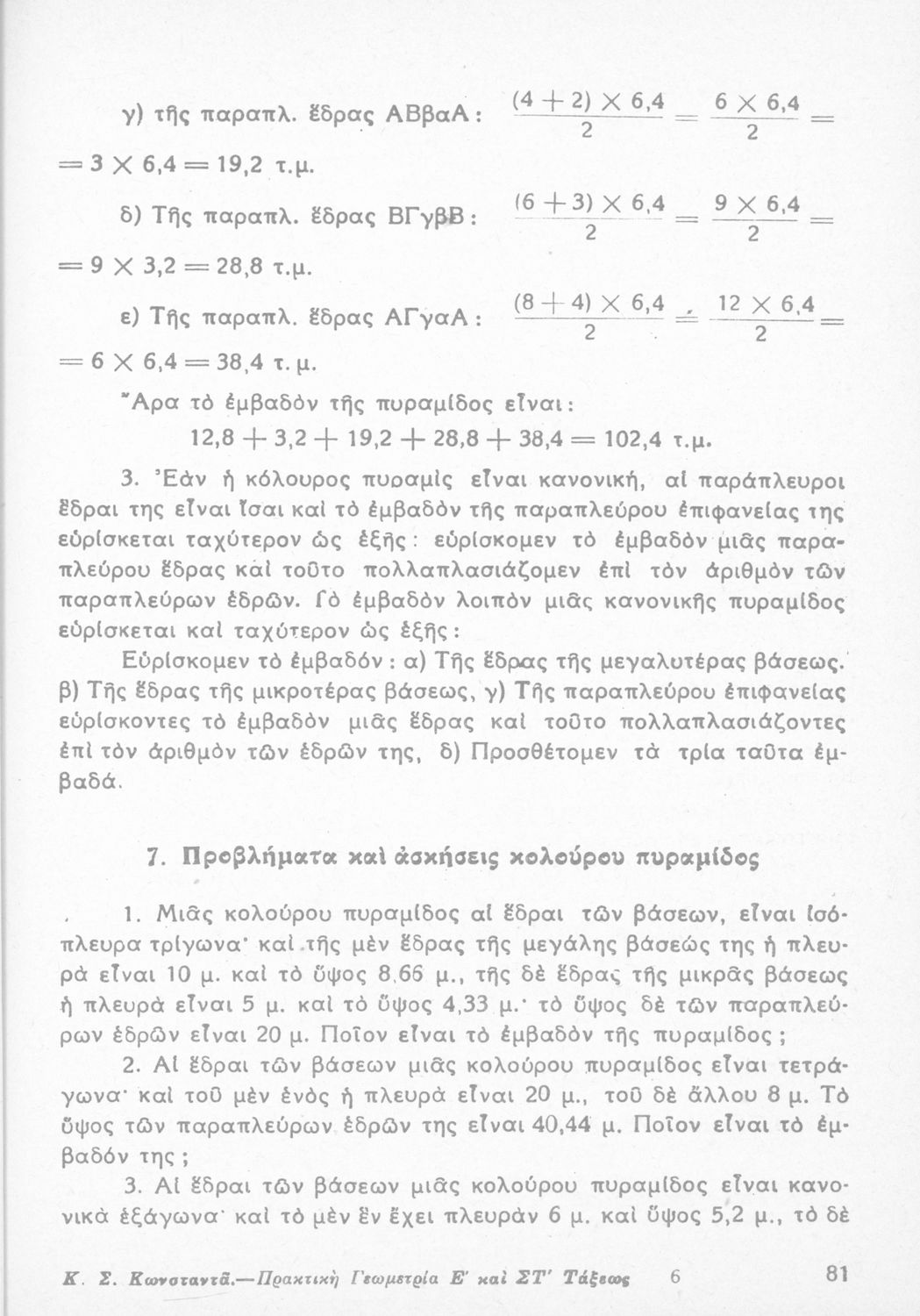 Σχολικό εγχειρίδιο Μαθηματικών ΣΤ΄ Δημοτικού που περιλαμβάνει ασκήσεις λογιστικού χαρακτήρα και ασκήσεις μέτρησης γεωμετρικών σχημάτων.