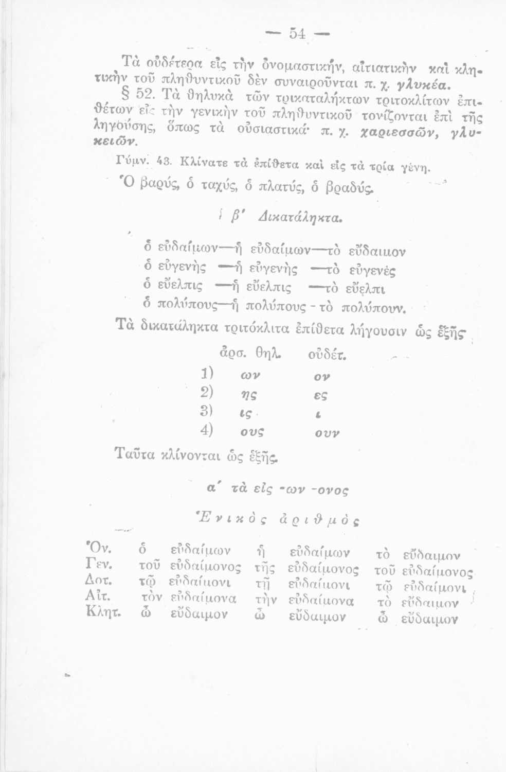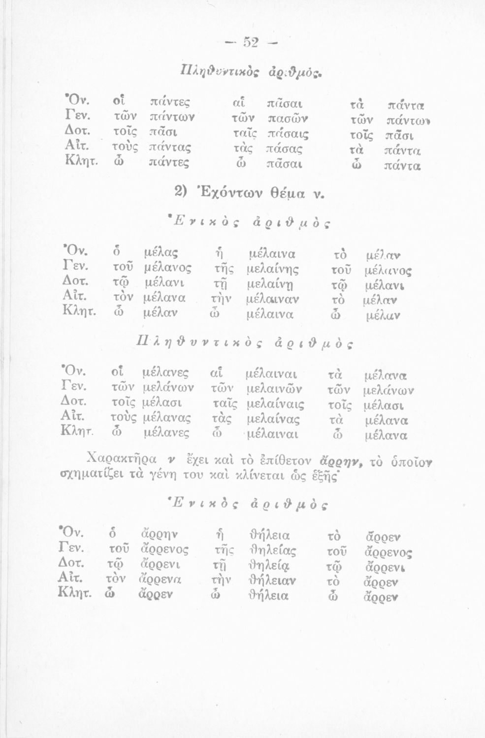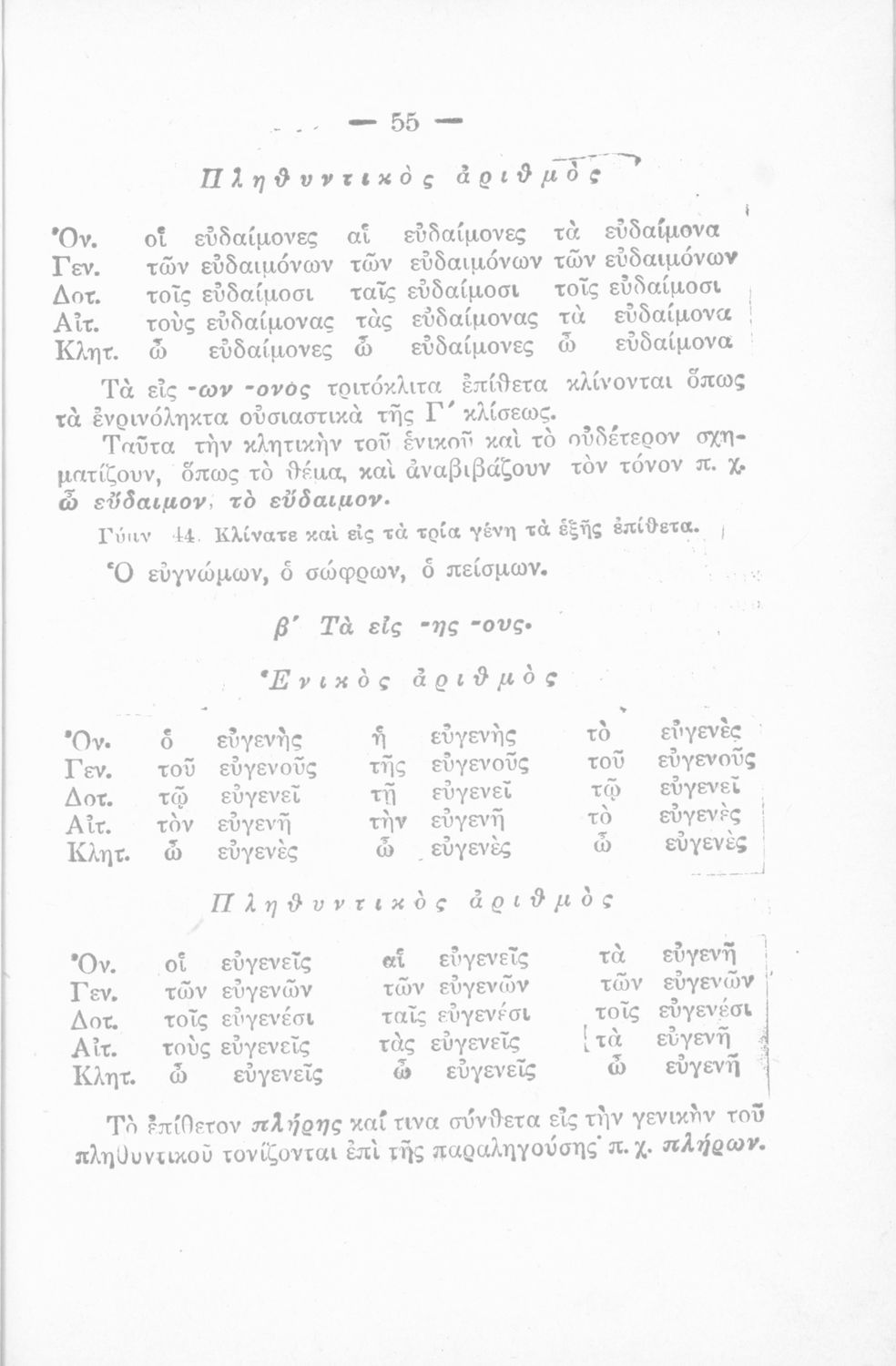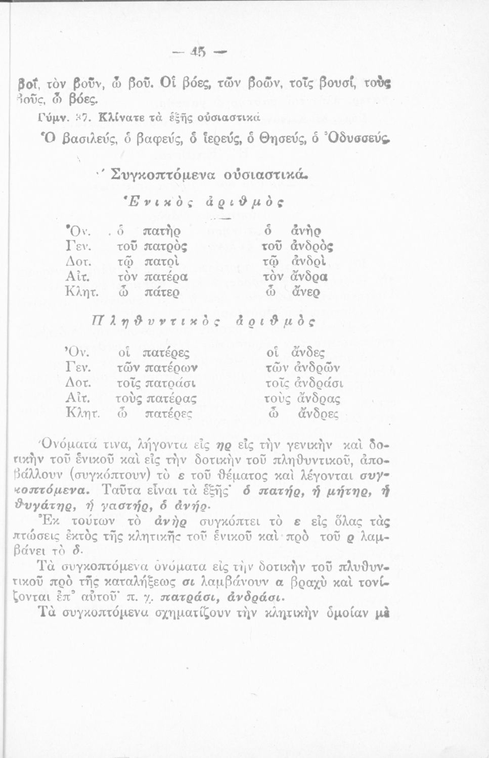 Σχολικό εγχειρίδιο Γραμματικής για τους μαθητές του Δημοτικού. Περιέχει την διδασκαλία της Γραμματικής της Καθαρεύουσας για τα Δημοτικά σχολεία.