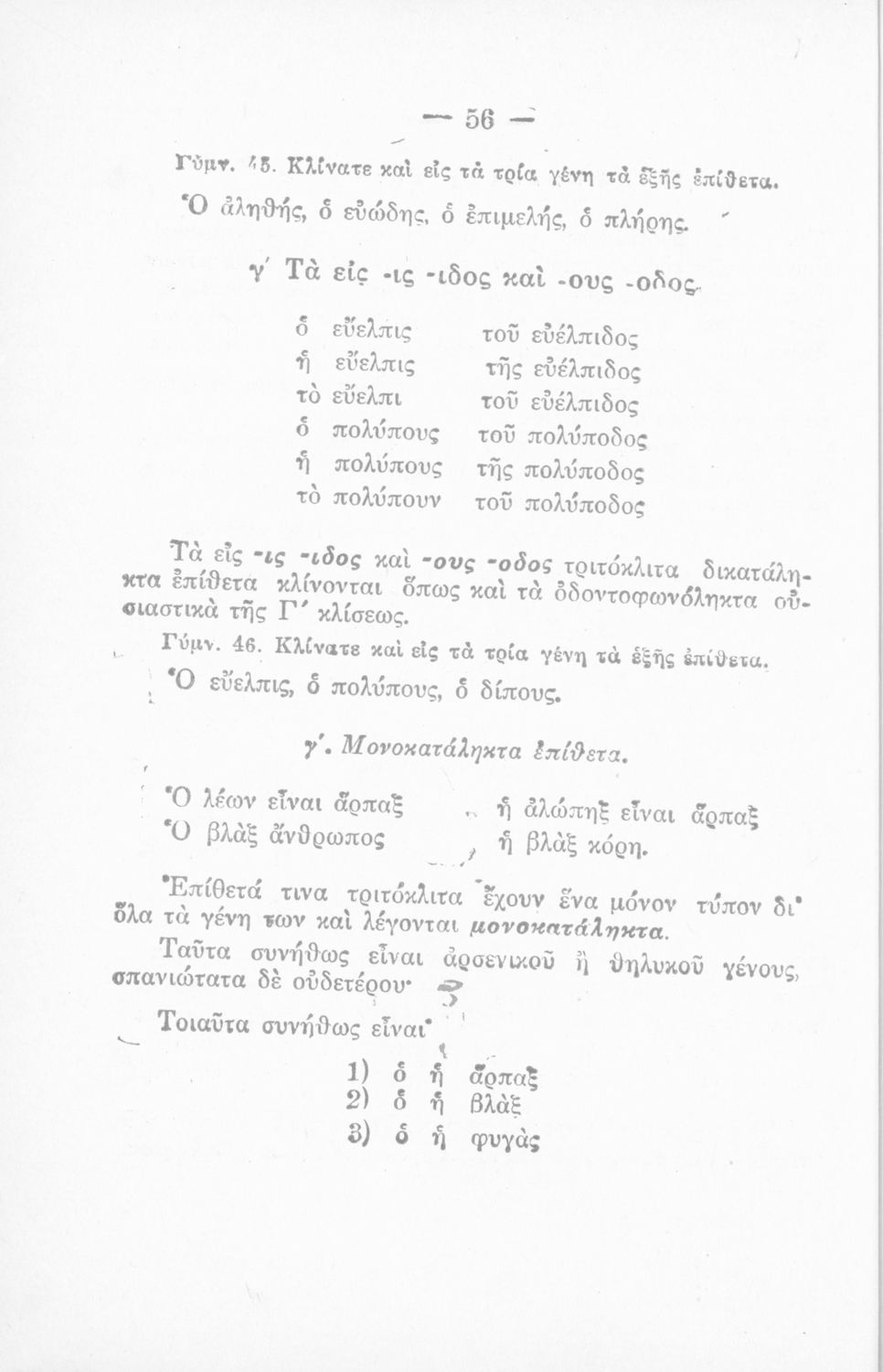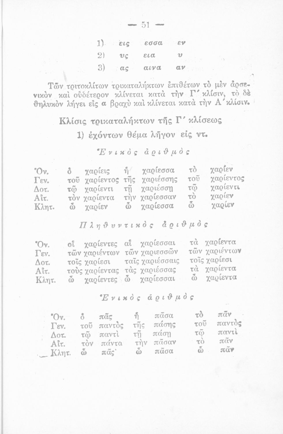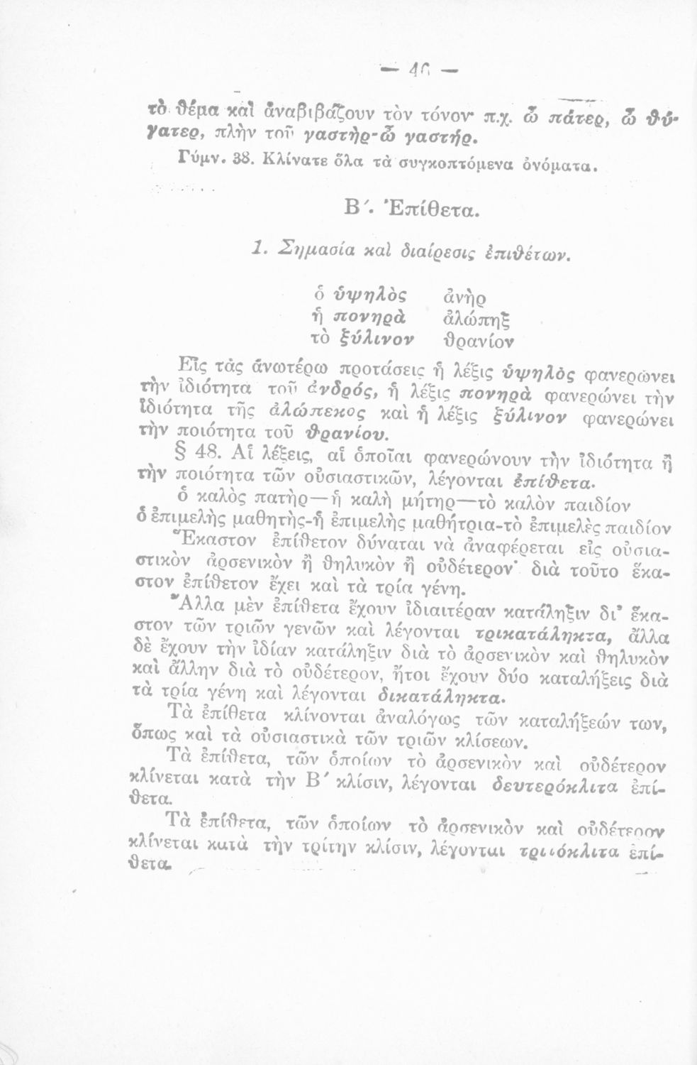 Σχολικό εγχειρίδιο Γραμματικής για τους μαθητές του Δημοτικού. Περιέχει την διδασκαλία της Γραμματικής της Καθαρεύουσας για τα Δημοτικά σχολεία.