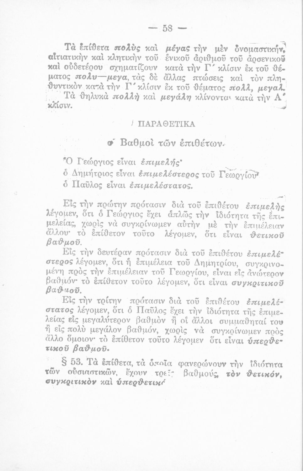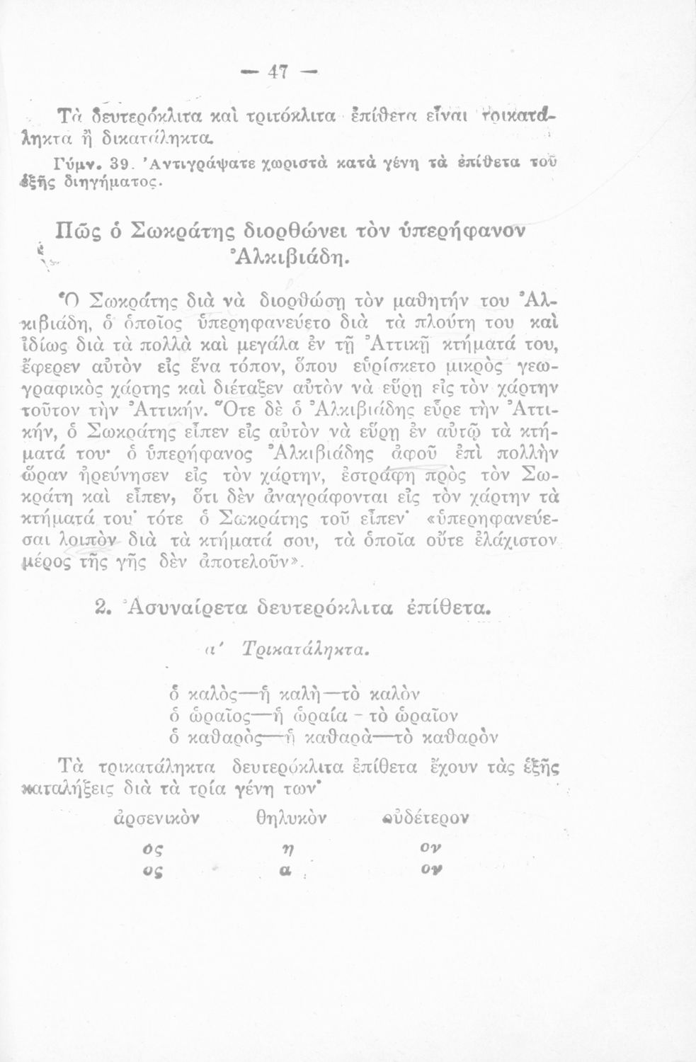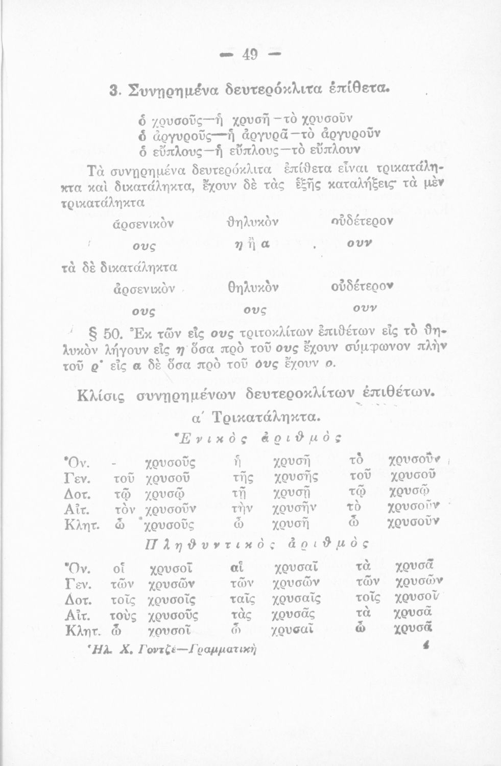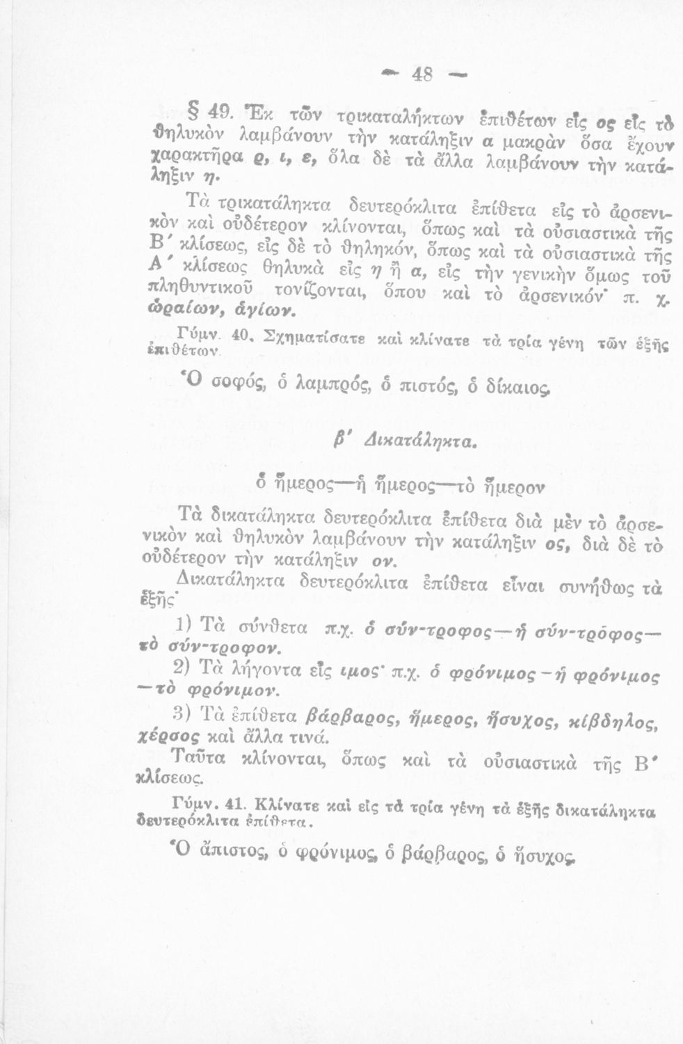 Σχολικό εγχειρίδιο Γραμματικής για τους μαθητές του Δημοτικού. Περιέχει την διδασκαλία της Γραμματικής της Καθαρεύουσας για τα Δημοτικά σχολεία.