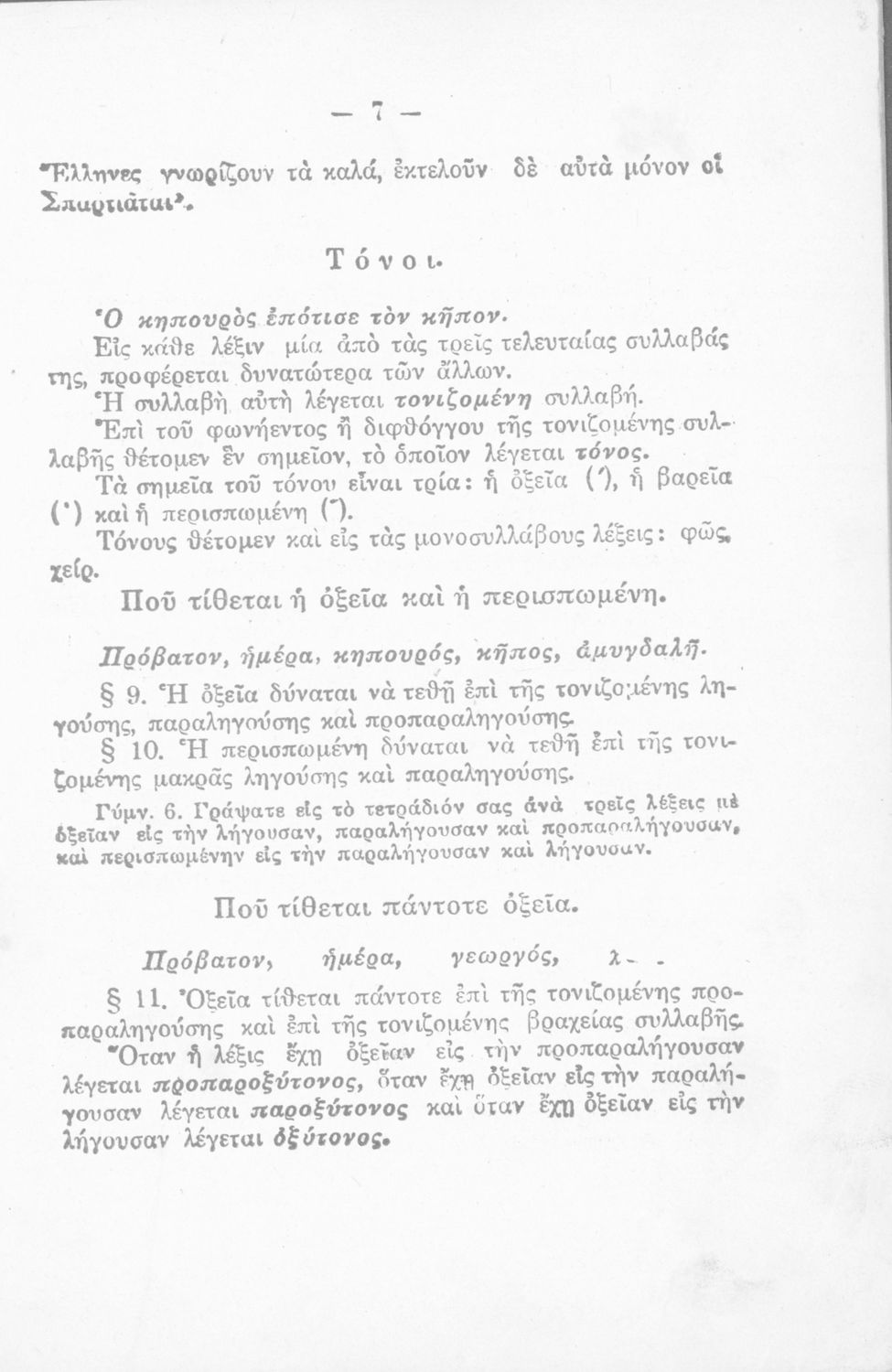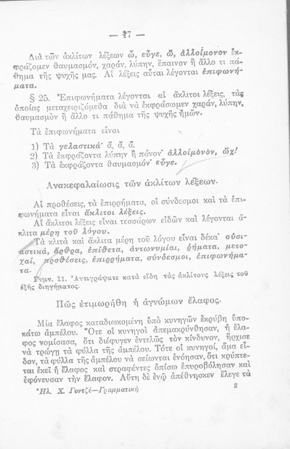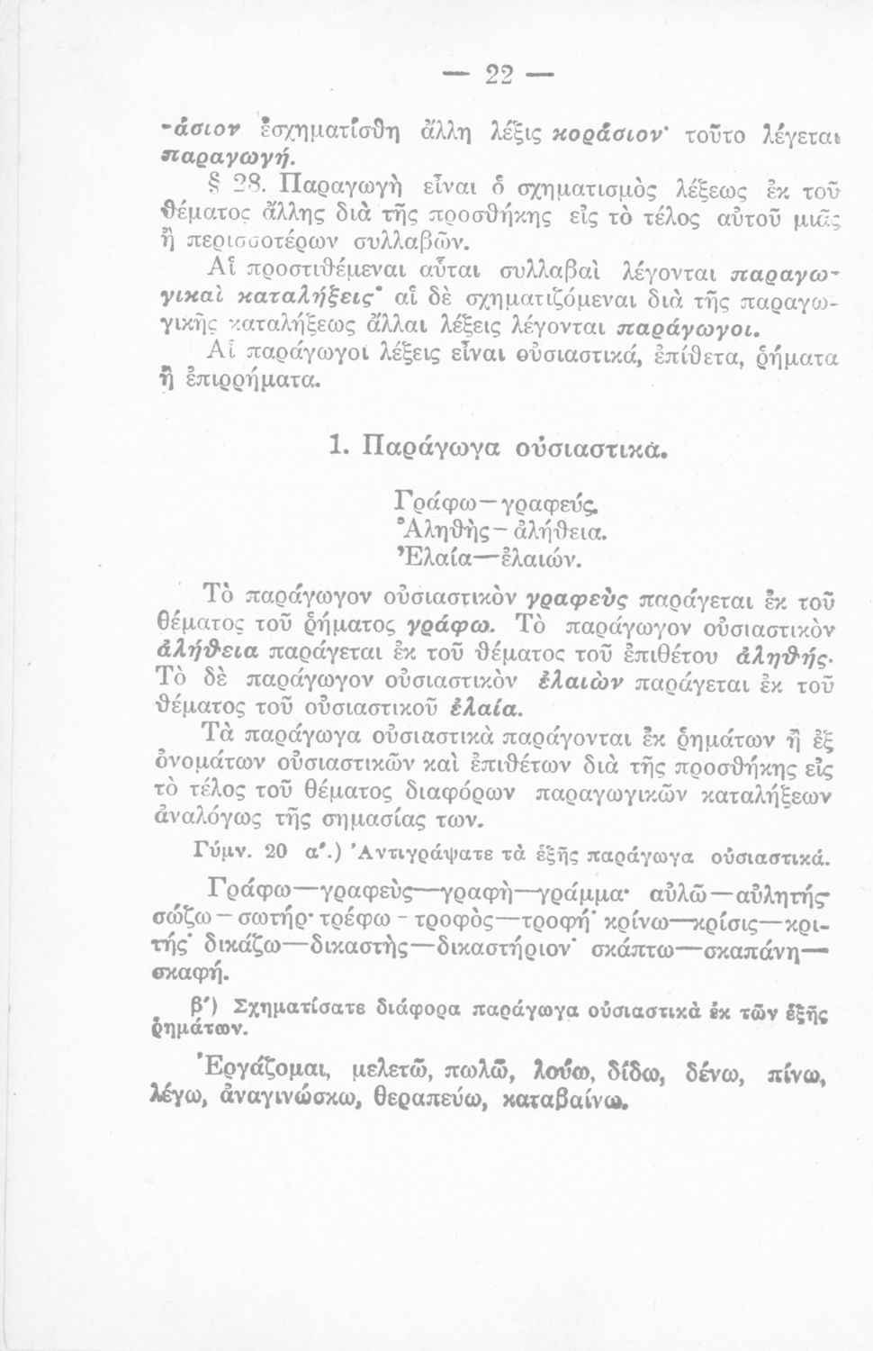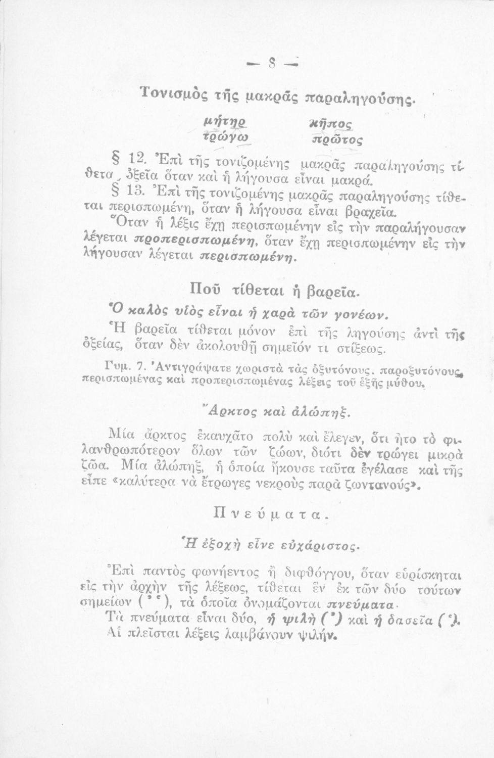 Σχολικό εγχειρίδιο Γραμματικής για τους μαθητές του Δημοτικού. Περιέχει την διδασκαλία της Γραμματικής της Καθαρεύουσας για τα Δημοτικά σχολεία.
