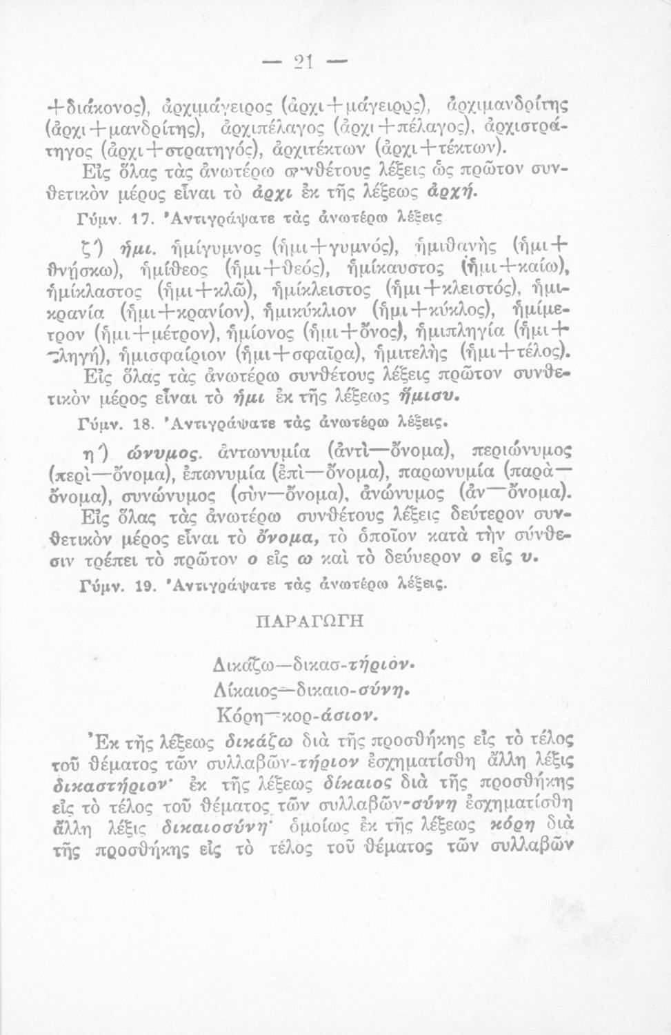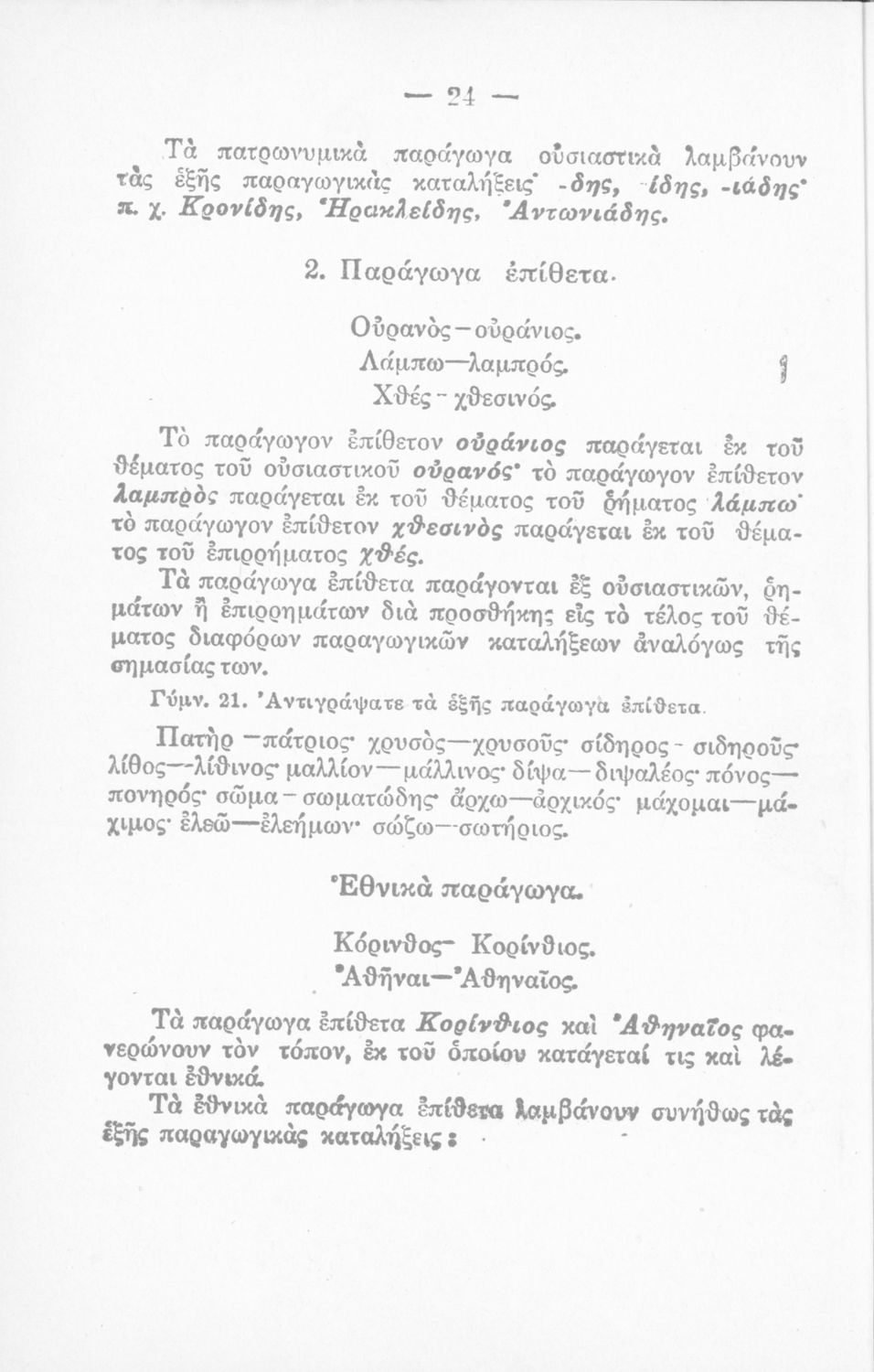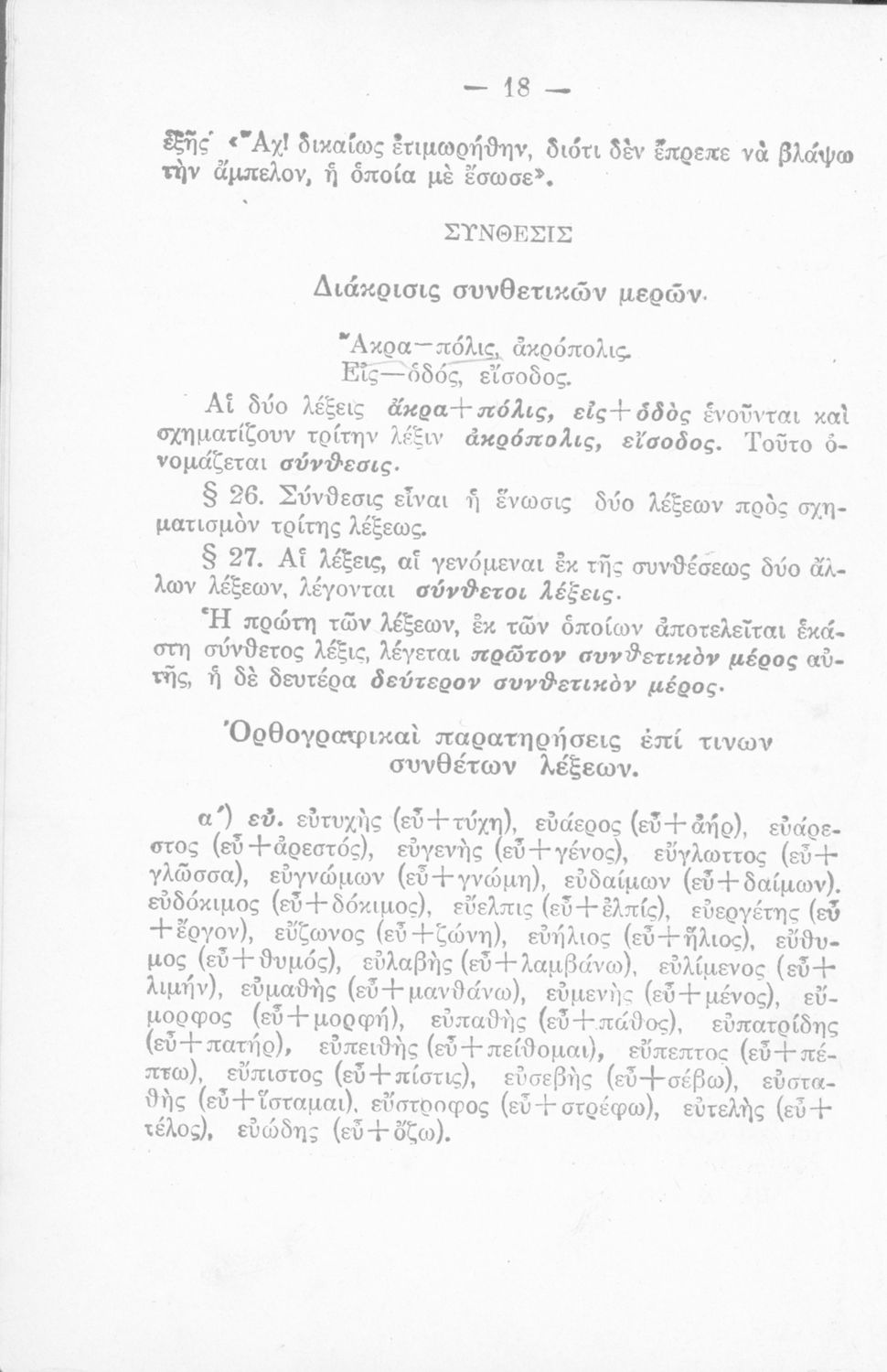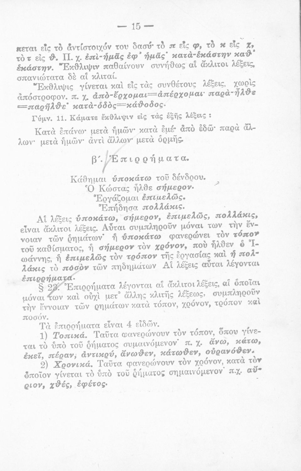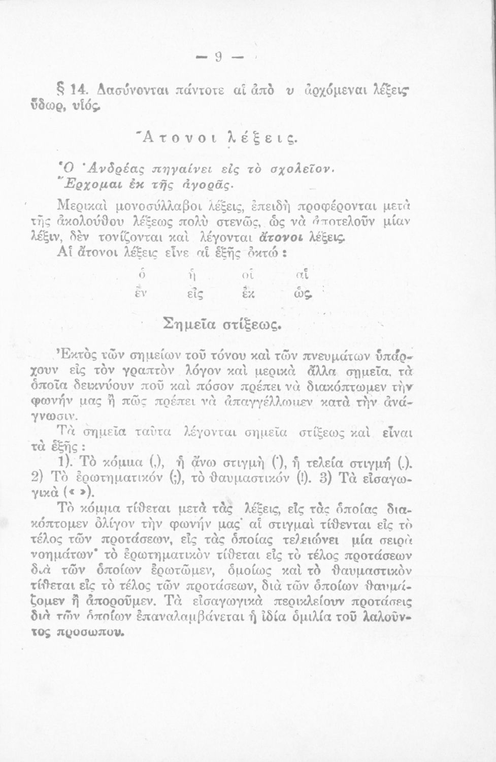 Σχολικό εγχειρίδιο Γραμματικής για τους μαθητές του Δημοτικού. Περιέχει την διδασκαλία της Γραμματικής της Καθαρεύουσας για τα Δημοτικά σχολεία.