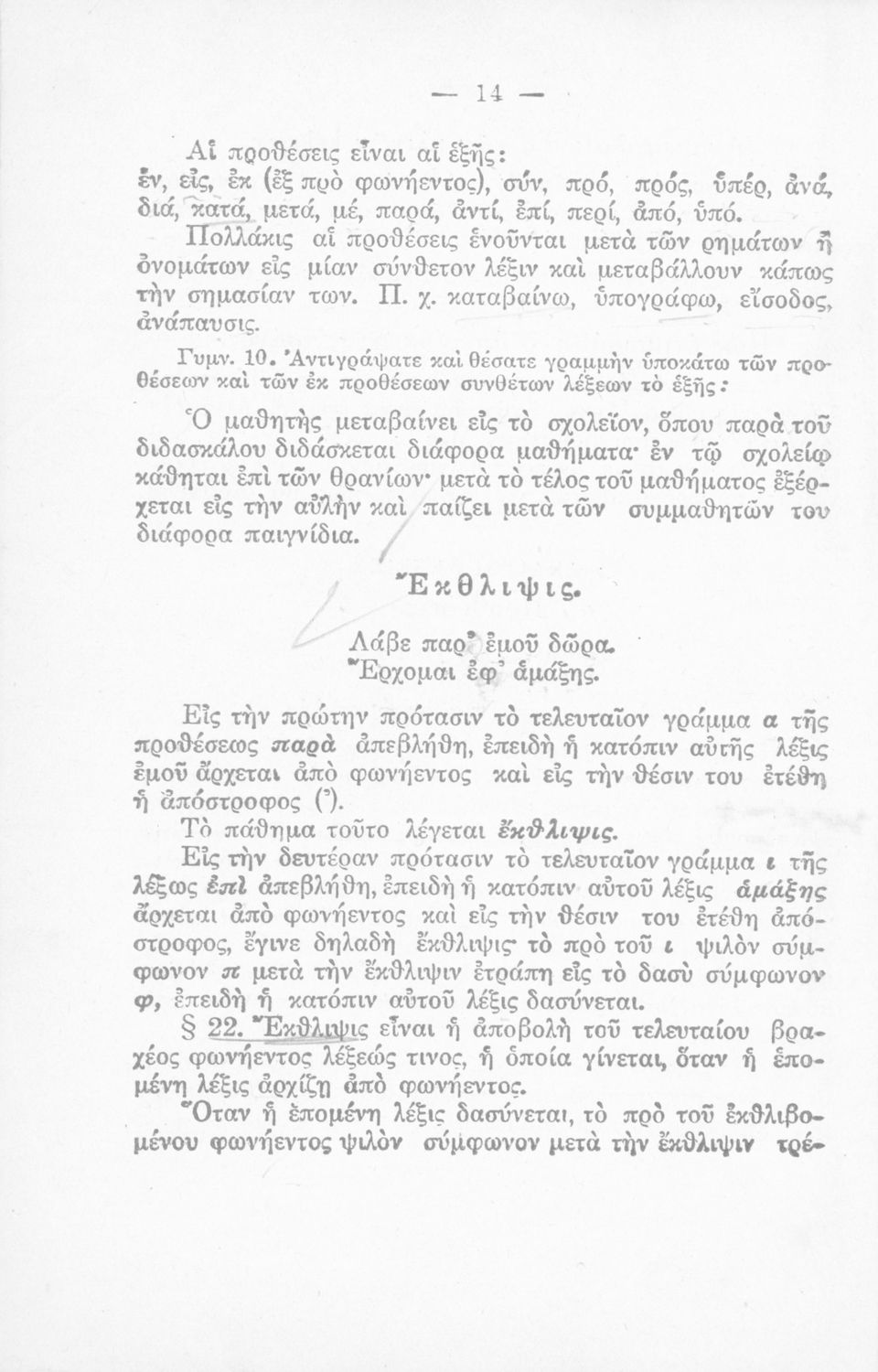 Σχολικό εγχειρίδιο Νέων Ελληνικών που περιλαμβάνει τους γραμματικούς κανόνες της καθαρεύουσας.