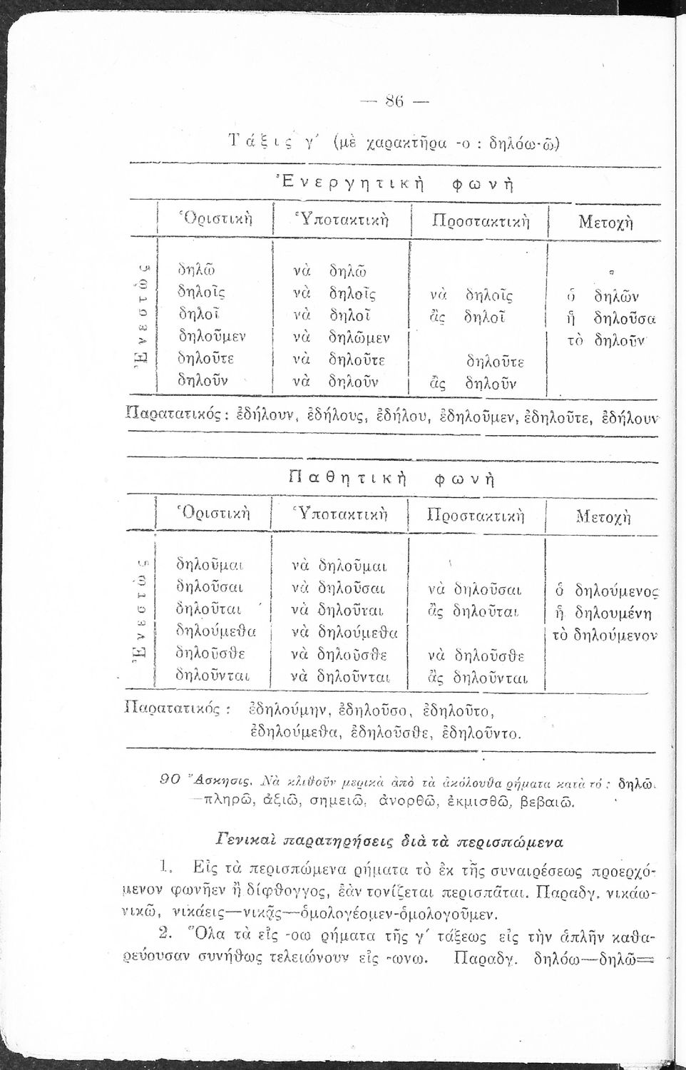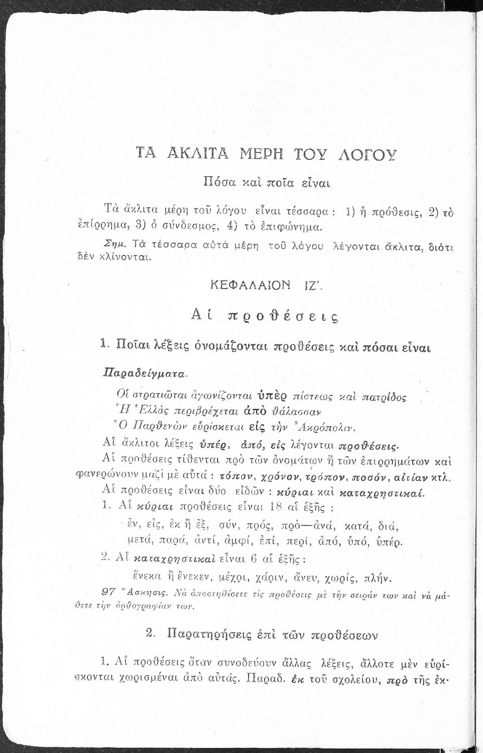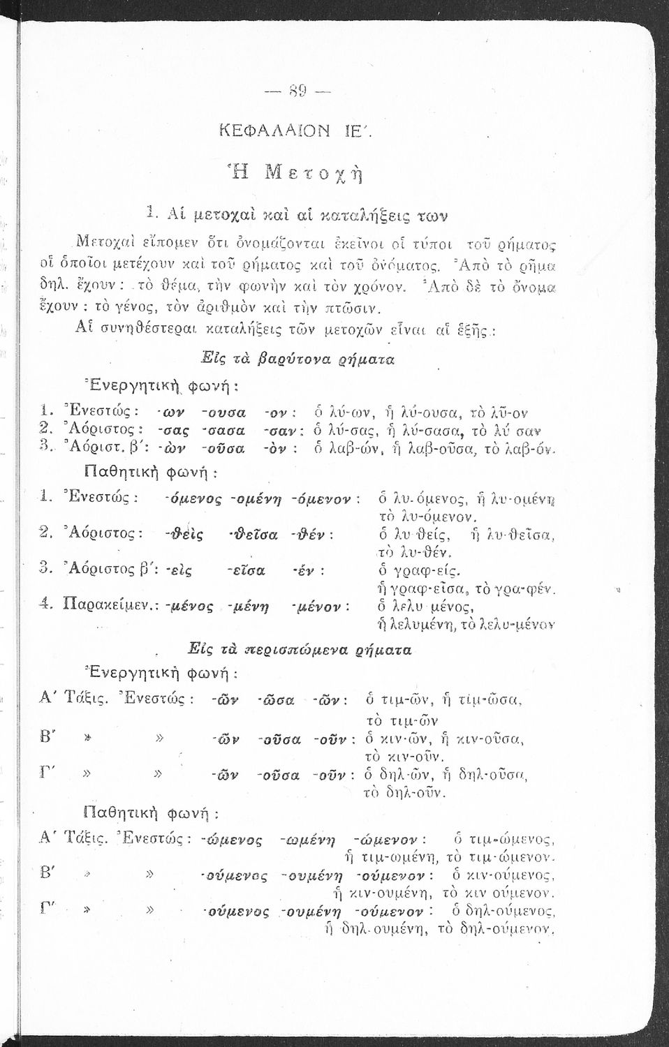 Μαθητικό βοήθημα Γραμματικής για τους μαθητές της Ε΄ και ΣΤ΄ τάξης του Δημοτικού. Περιέχει τη διδασκαλία της γραμματικής της καθαρεύουσας.