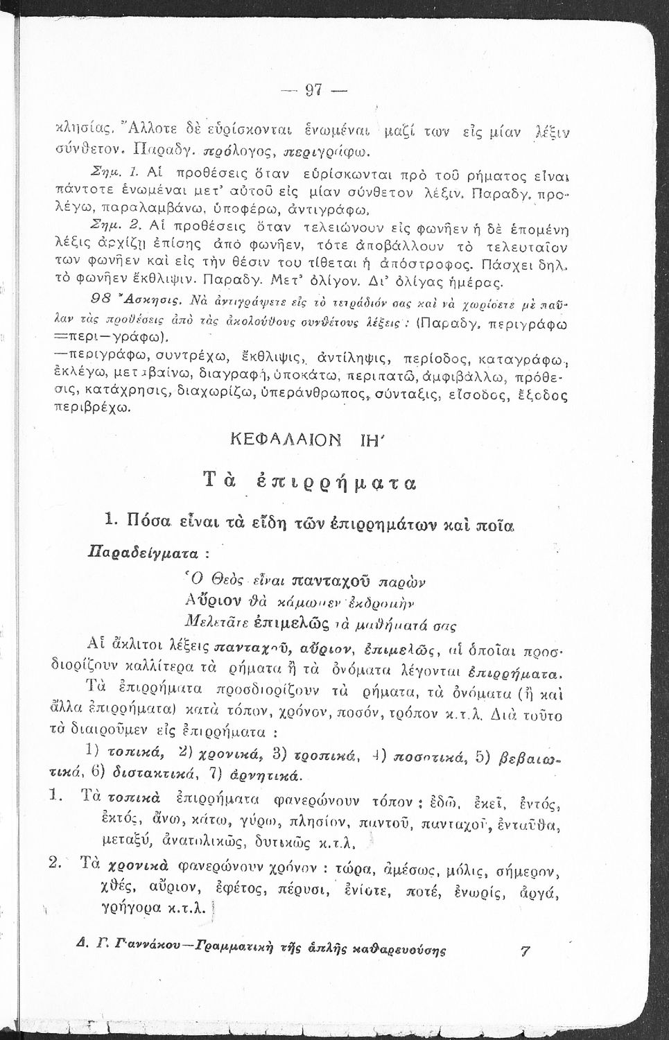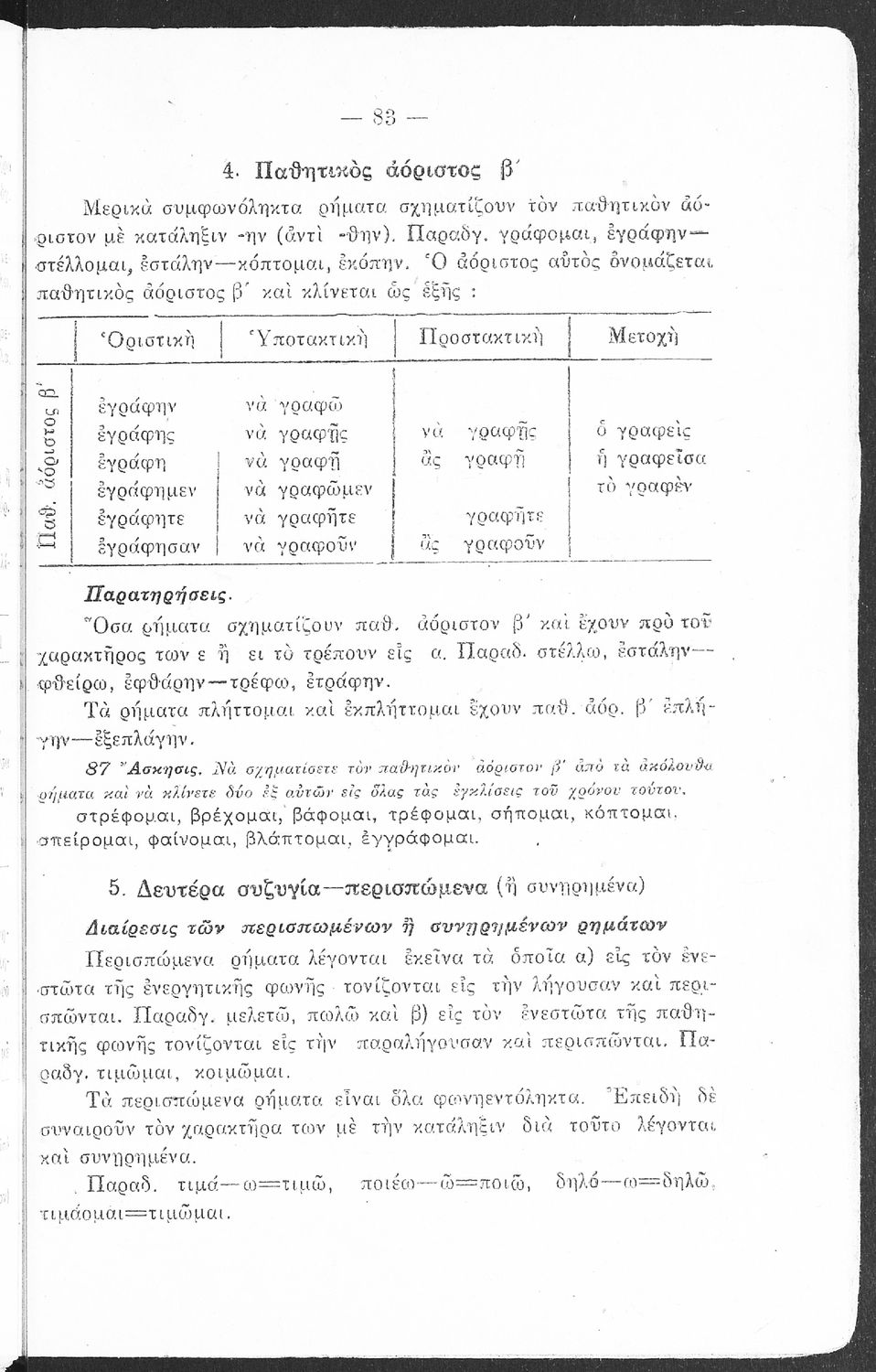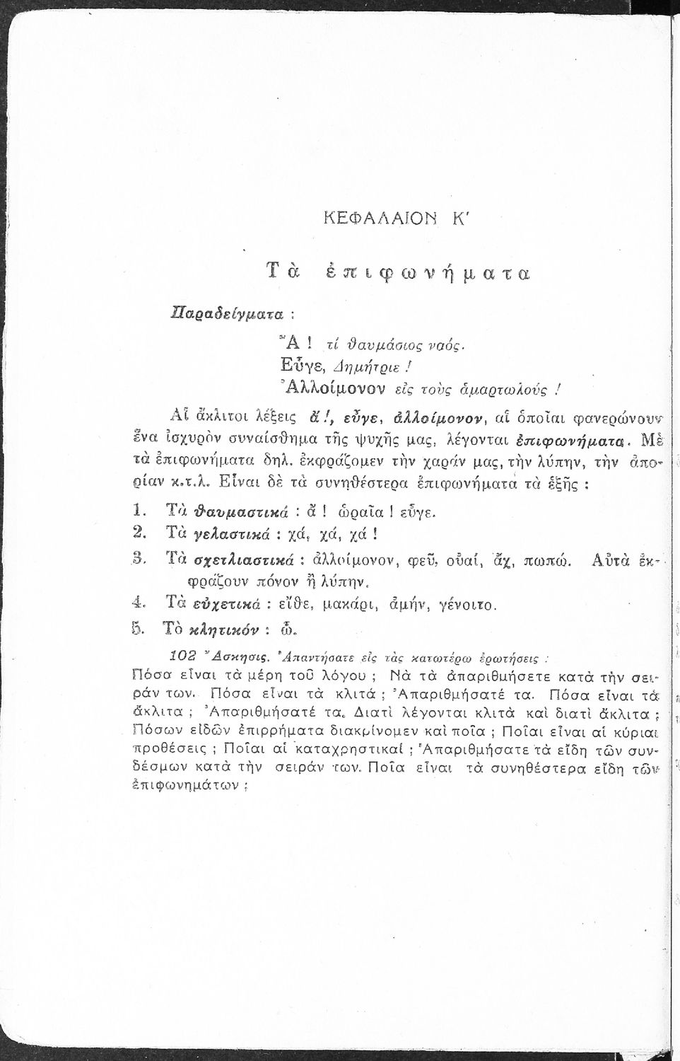 Μαθητικό βοήθημα Γραμματικής για τους μαθητές της Ε΄ και ΣΤ΄ τάξης του Δημοτικού. Περιέχει τη διδασκαλία της γραμματικής της καθαρεύουσας.