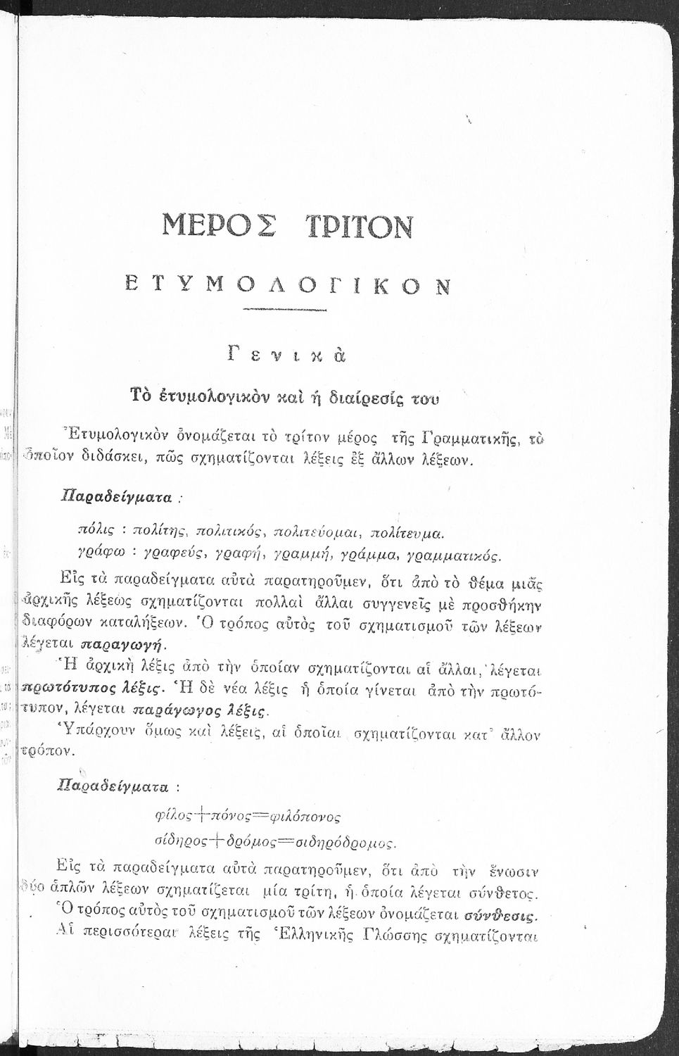 Σχολικό εγχειρίδιο Γραμματικής για τους μαθητές του Δημοτικού. Περιέχει την διδασκαλία της Γραμματικής της Καθαρεύουσας για τα Δημοτικά σχολεία.