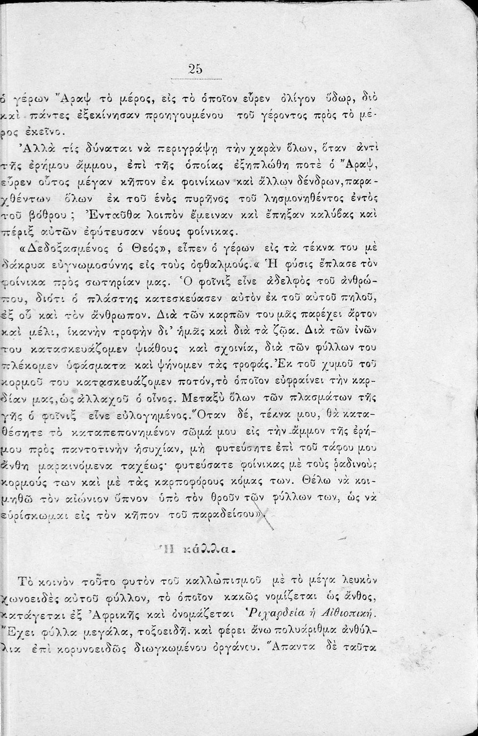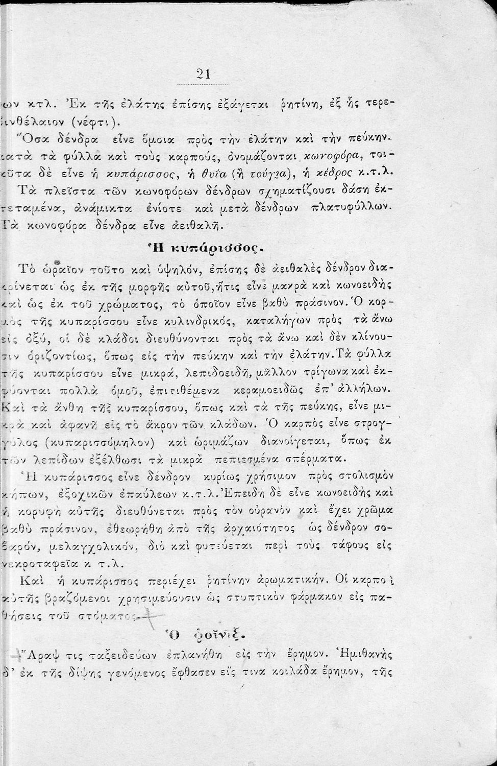 Βαθμίδα εκπαίδευσης: Πρωτοβάθμια Τάξη: Δ' Δημοτικού / Ε' Δημοτικού / ΣΤ' Δημοτικού Μάθημα: Φυτολογία Γλώσσα: Καθαρεύουσα Παρουσίαση περιεχομένου: Σχολικό εγχειρίδιο Φυτολογίας Δ΄, Ε΄ και ΣΤ΄ Δημοτικού που παρουσιάζει πλήθος φυτών και εστιάζει στον τρόπο πολλαπλασιασμού τους. |