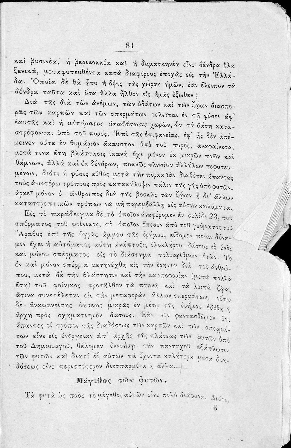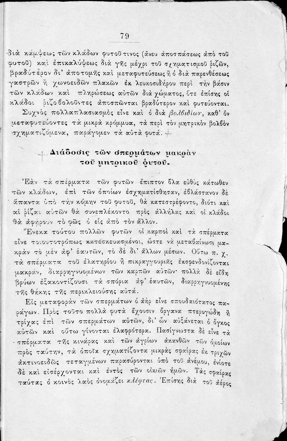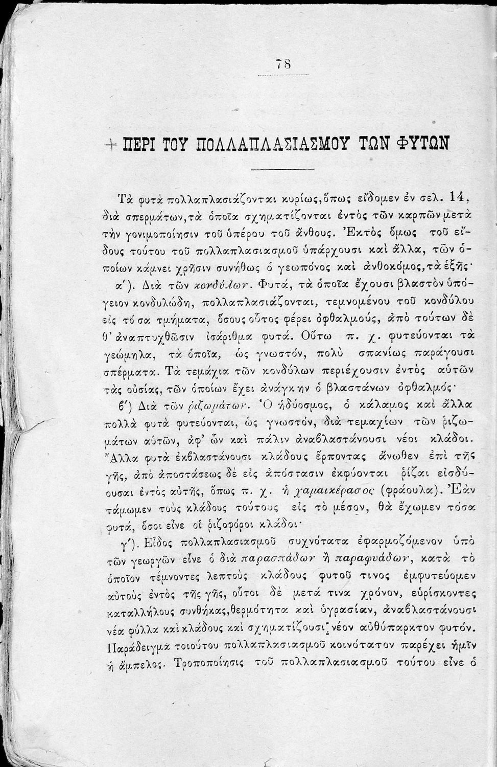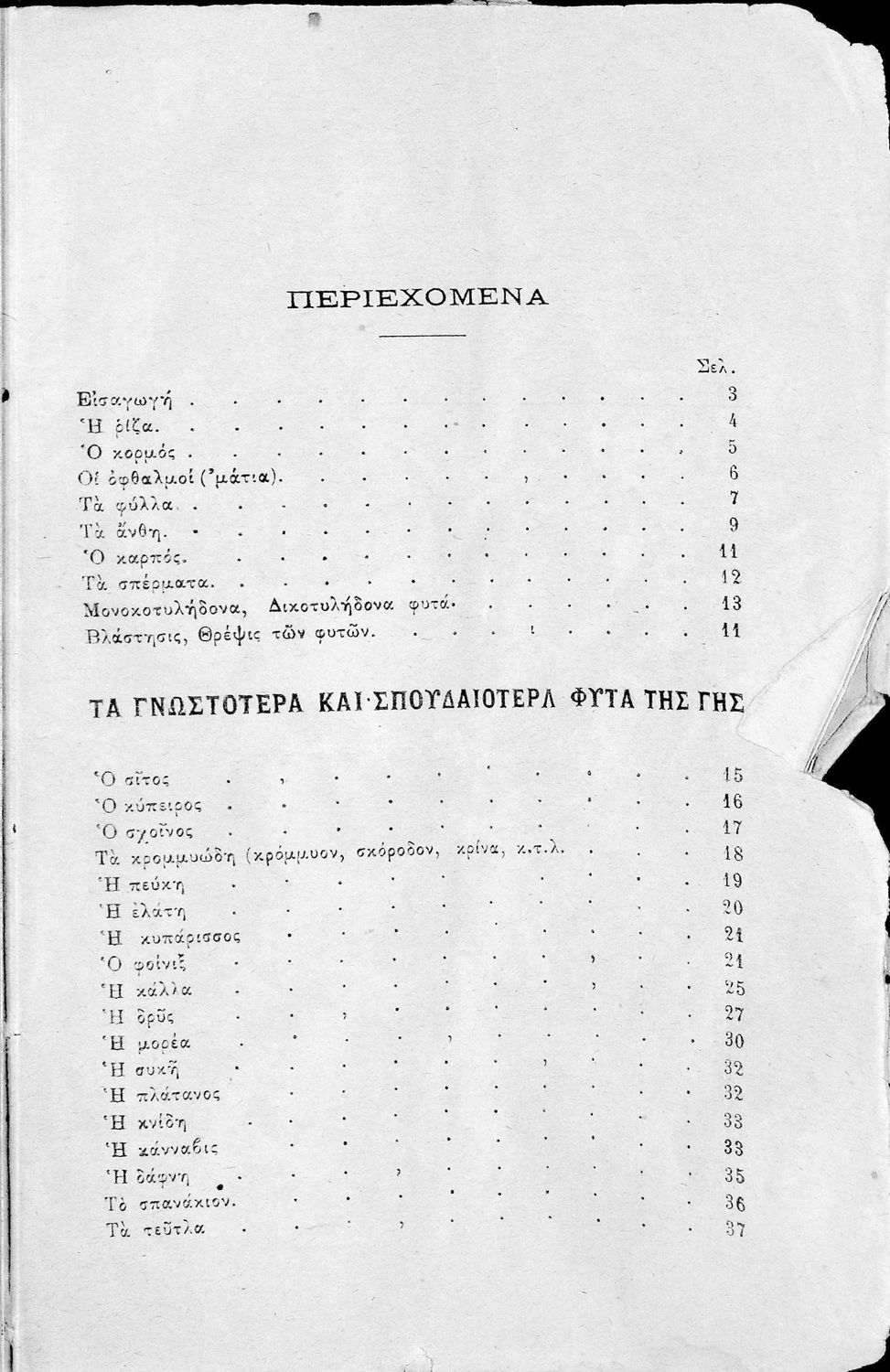 Βαθμίδα εκπαίδευσης: Πρωτοβάθμια Τάξη: Δ' Δημοτικού / Ε' Δημοτικού / ΣΤ' Δημοτικού Μάθημα: Φυτολογία Γλώσσα: Καθαρεύουσα Παρουσίαση περιεχομένου: Σχολικό εγχειρίδιο Φυτολογίας Δ΄, Ε΄ και ΣΤ΄ Δημοτικού που παρουσιάζει πλήθος φυτών και εστιάζει στον τρόπο πολλαπλασιασμού τους. |