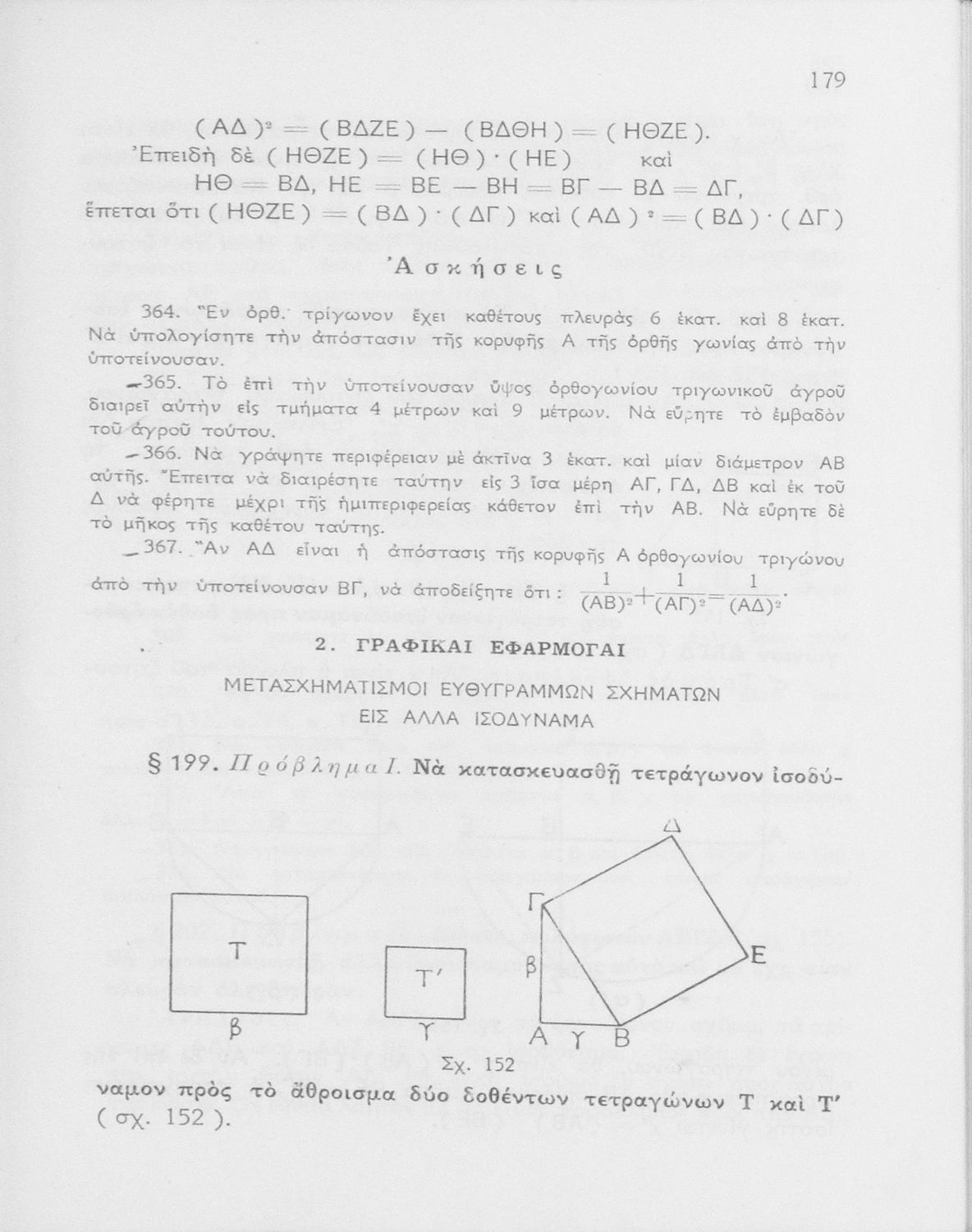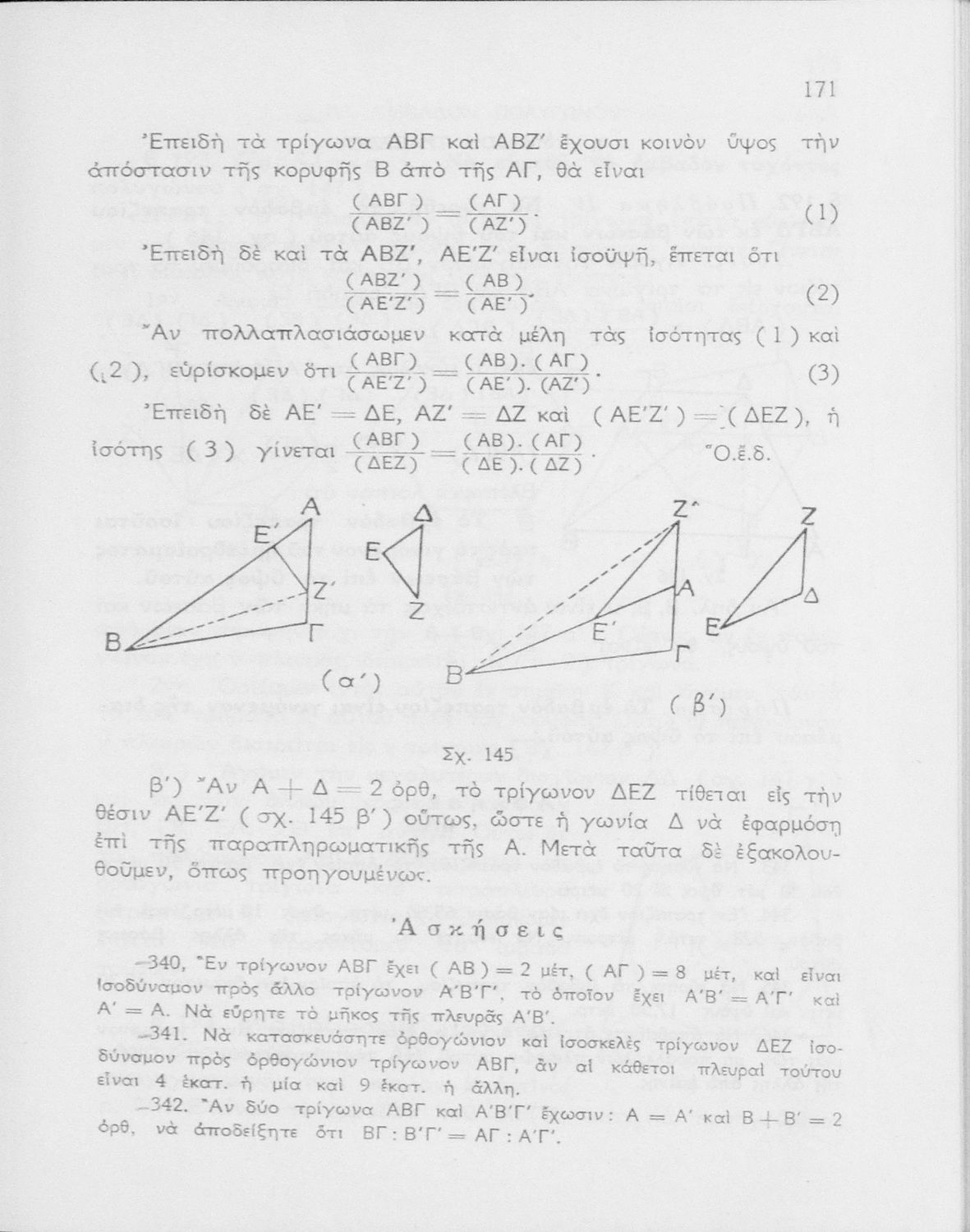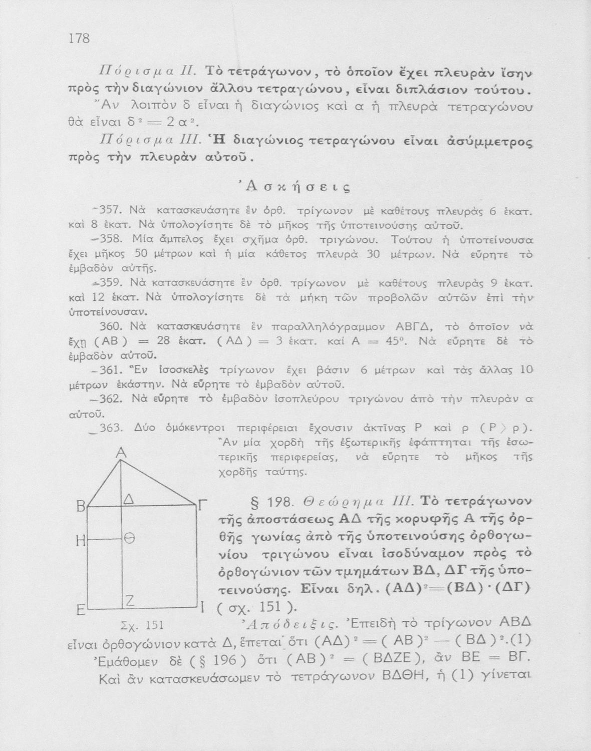Σχολικό εγχειρίδιο Γεωμετρίας Γυμνασίου που είναι χωρισμένο σε θεωρήματα και ασκήσεις και εστιάζει στα βασικά θεωρήματα και ιδιότητες των γεωμετρικών σχημάτων. .