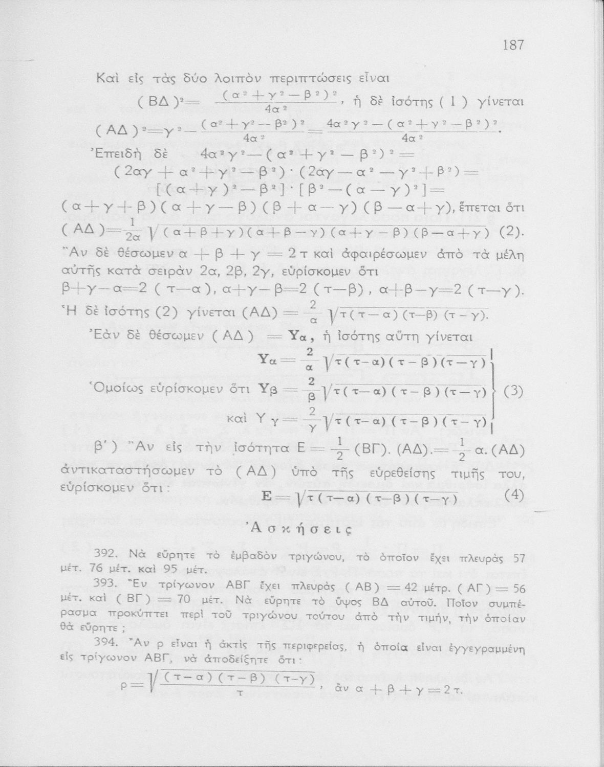 Θεωρητική γεωμετρία δια τας ανωτέρας τάξεις των Γυμνασίων