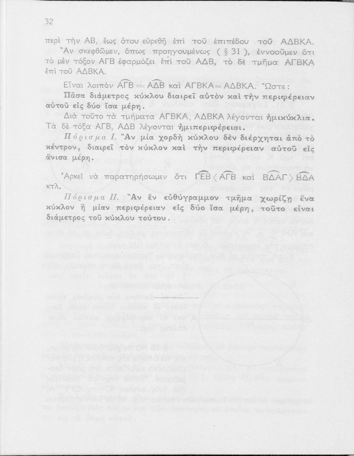 Σχολικό εγχειρίδιο Γεωμετρίας Γυμνασίου που είναι χωρισμένο σε θεωρήματα και ασκήσεις και εστιάζει στα βασικά θεωρήματα και ιδιότητες των γεωμετρικών σχημάτων. .