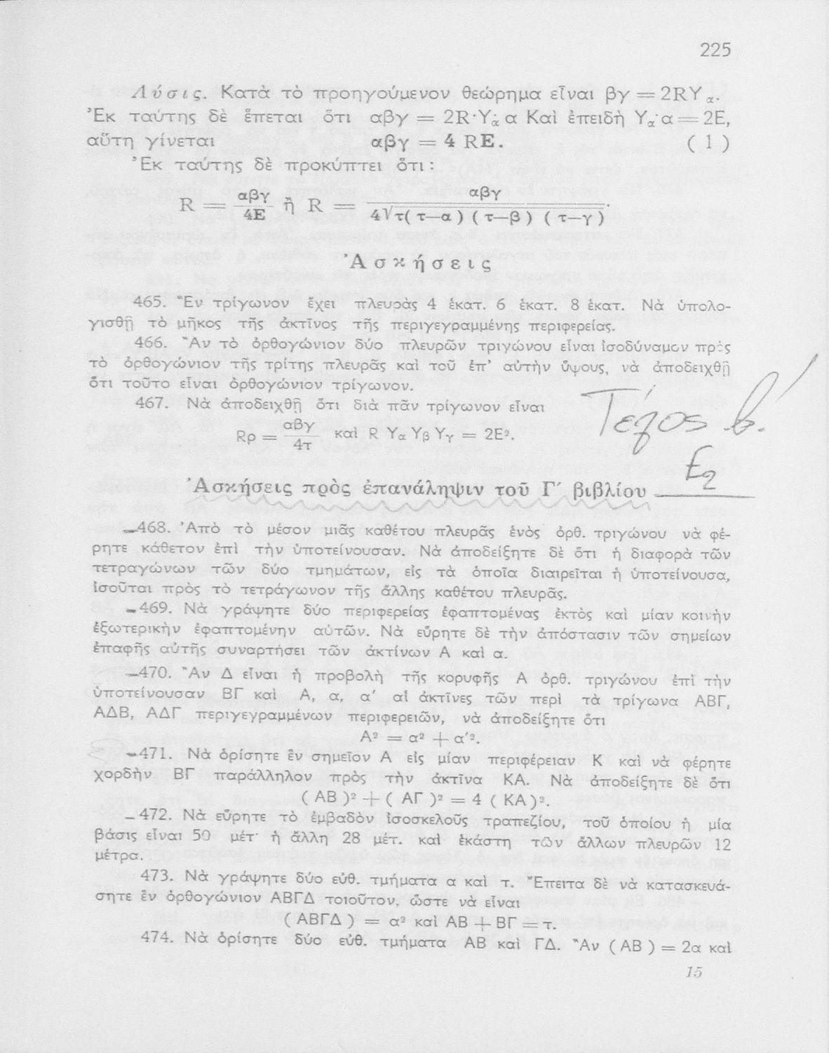 Θεωρητική γεωμετρία δια τας ανωτέρας τάξεις των Γυμνασίων