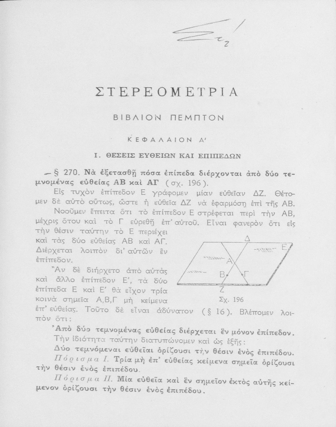 Τίτλος: Θεωρητική γεωμετρία δια τας ανωτέρας τάξεις των Γυμνασίων