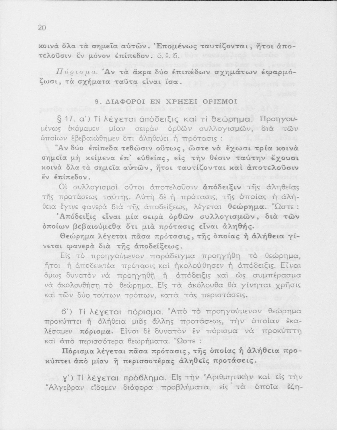 Θεωρητική γεωμετρία δια τας ανωτέρας τάξεις των Γυμνασίων