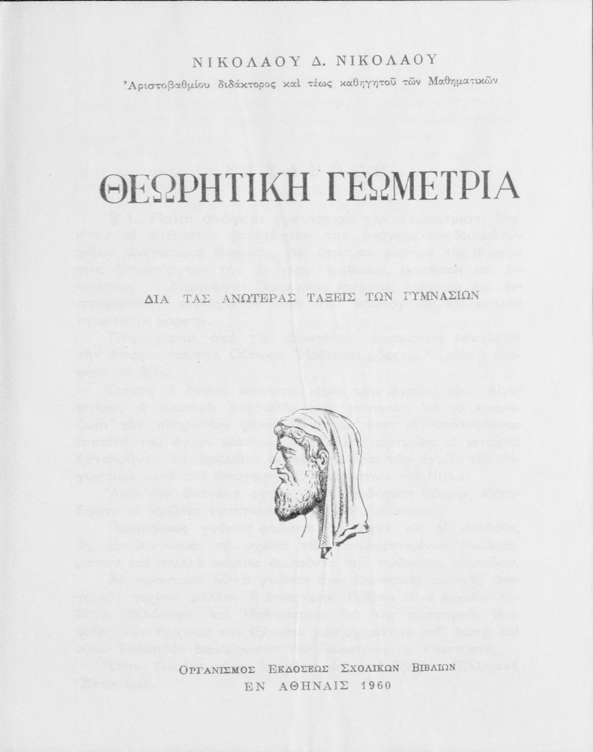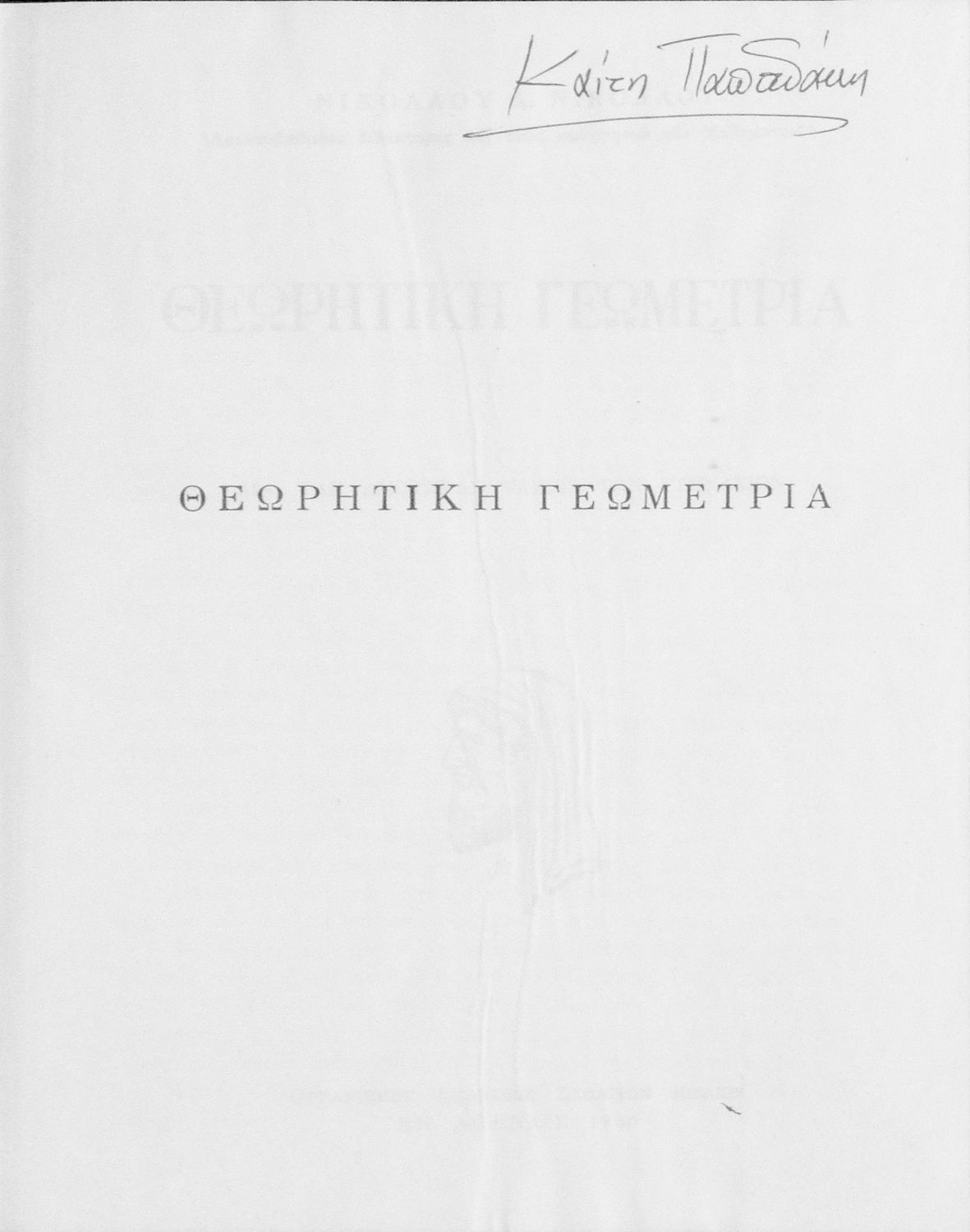 Τίτλος: Θεωρητική γεωμετρία δια τας ανωτέρας τάξεις των Γυμνασίων