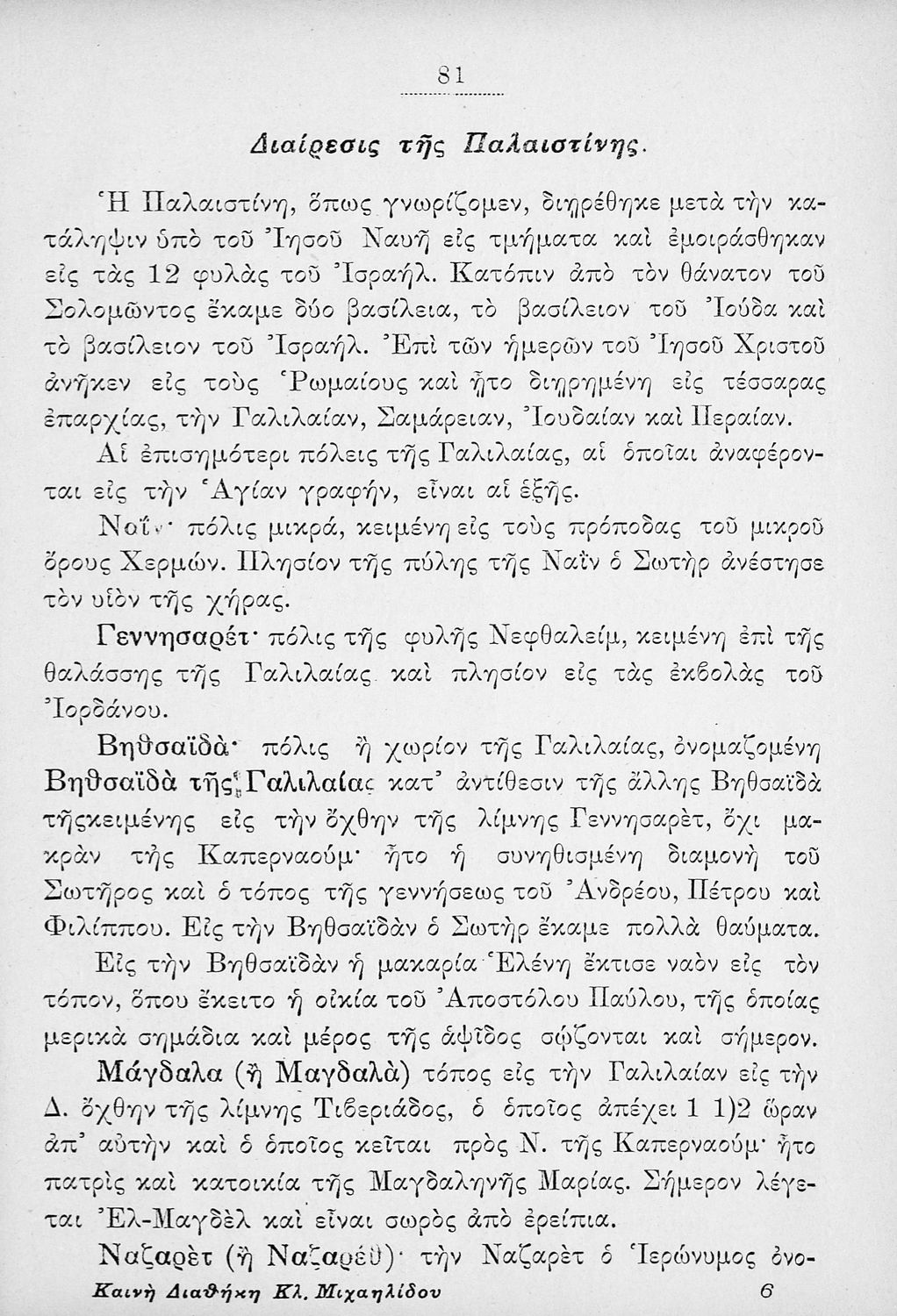 Μαθητικό βοήθημα Θρησκευτικών Δημοτικού που περιλαμβάνει την ιστορία της Καινής Διαθήκης από τον Ευαγγελισμό της Θεοτόκου μέχρι την ανάληψη του Ιησού Χριστού. Περιέχει και σύντομη γεωγραφία της Παλαιστίνης.
