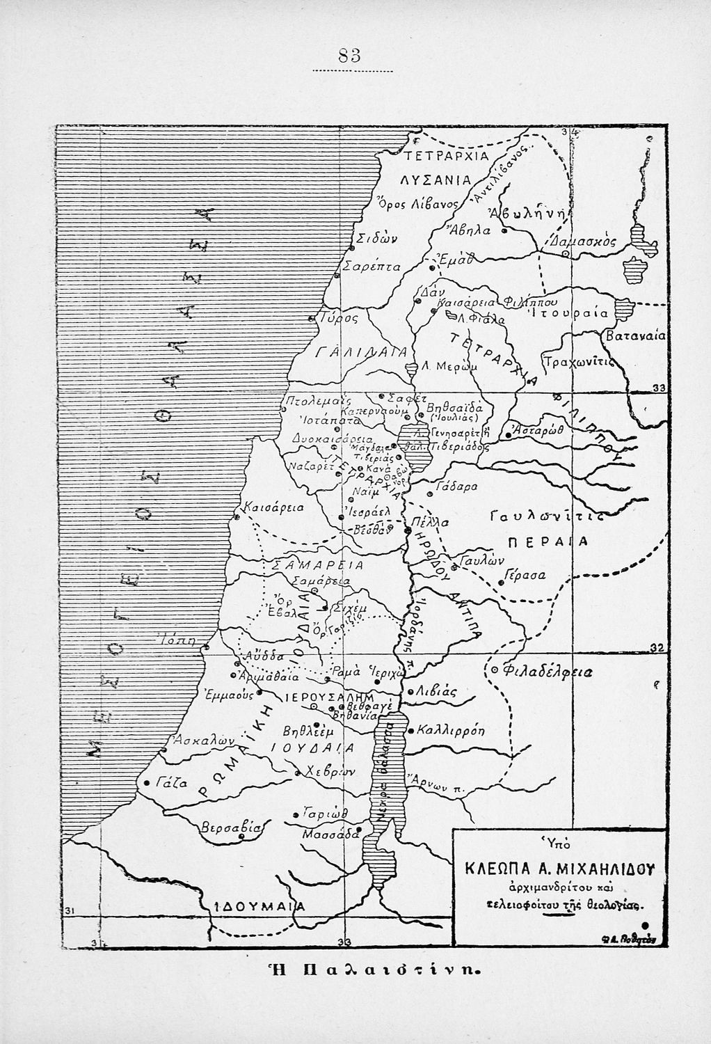 Κωδικός αναγνώρισης: 01-17118 Τίτλος: Ιερά Ιστορία της Καινής Διαθήκης συνταχθείσα συμφώνως με το τελευταίο αναλυτικόν πρόγραμμα της 13ης Σεπτεμβρίου 1913 του Υπουργείου Παιδείας προς χρήσιν των Δημοτικών Σχολείων αμφοτέρων των φύλων Συγγραφέας: Κλέωπας Α. Μιχαηλίδης Μέγεθος και υπόστρωμα: Μαθητικό βοήθημα, 20εκ., σκληρό εξώφυλλο, 90 σελίδες. Εικόνες (ασπρόμαυρες). |
