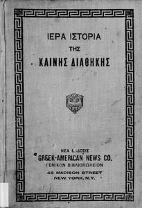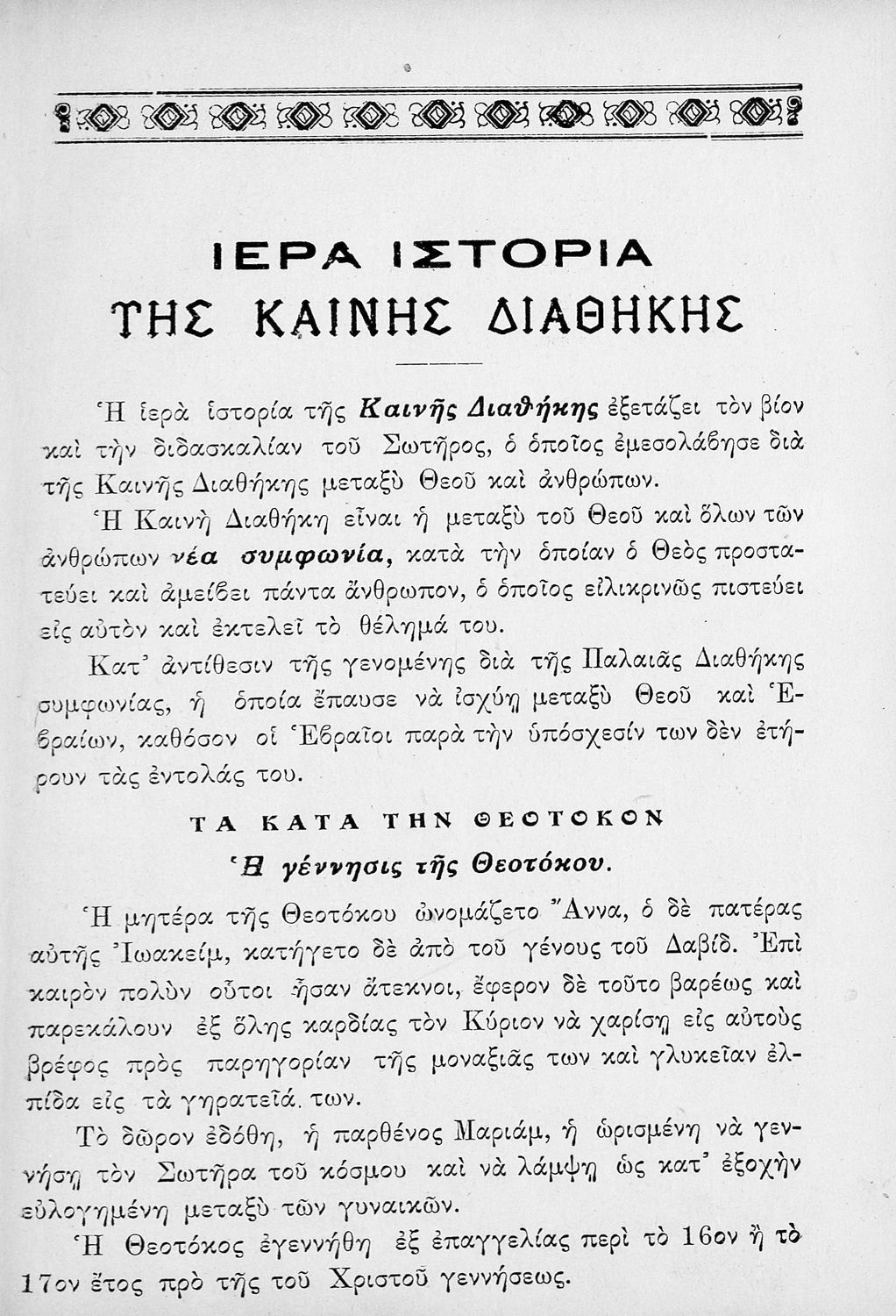 Ιερά Ιστορία της Καινής Διαθήκης συνταχθείσα συμφώνως με το τελευταίο αναλυτικόν πρόγραμμα της 13ης Σεπτεμβρίου 1913 του Υπουργείου Παιδείας προς χρήσιν των Δημοτικών Σχολείων αμφοτέρων των φύλων