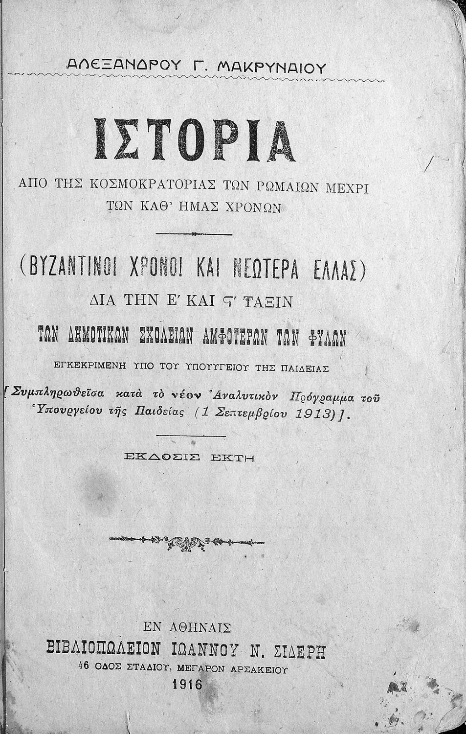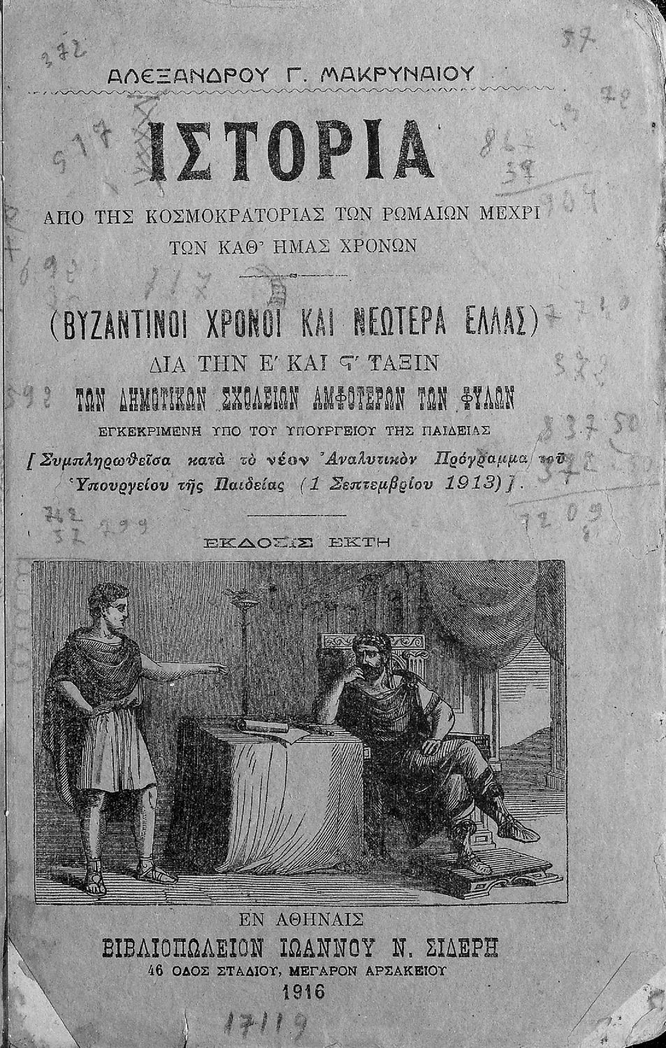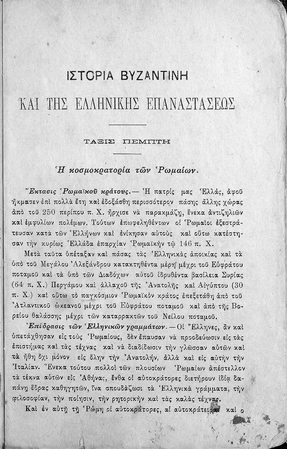 Τίτλος: Ιστορία από της κοσμοκρατίας των Ρωμαίων μέχρι των καθ΄ ημάς χρόνων δια την Ε΄ και ΣΤ΄ Τάξιν των Δημοτικών αμφότερων των φύλων