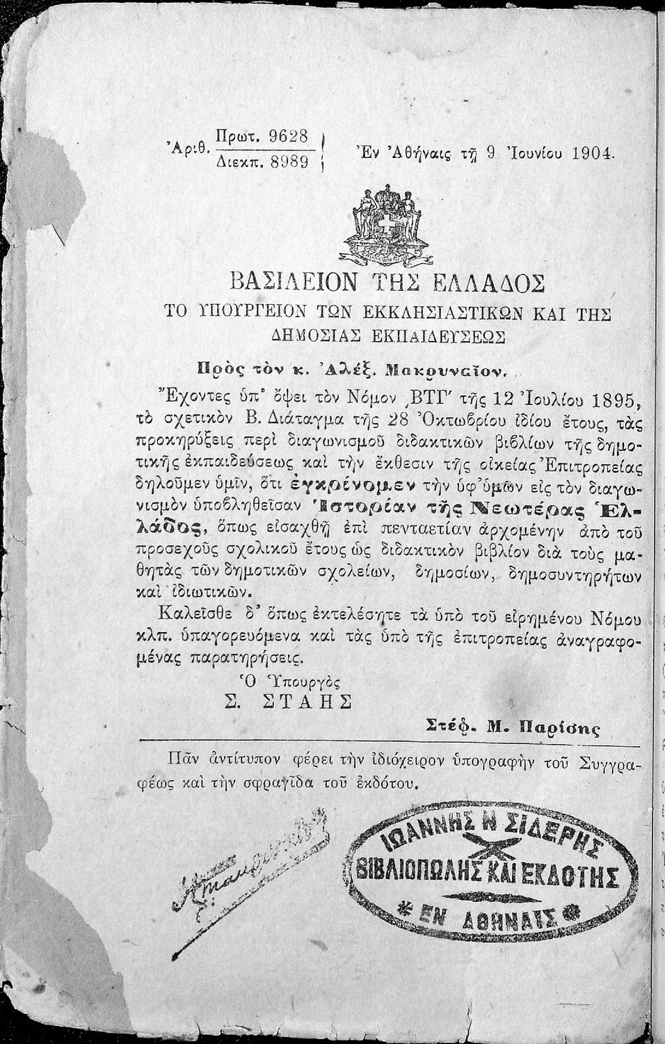 Υπουργική απόφαση / Σύμβαση: 9628/9-6-1904