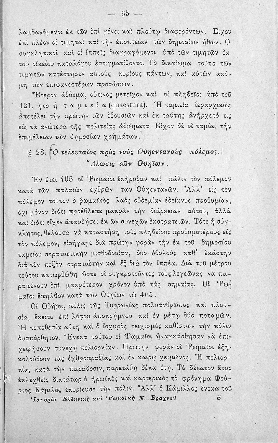 Ιστορία Ελληνική και Ρωμαϊκή. Από της εν Ιψώ μάχης μέχρι του θανάτου Θεοδόσιου του Μεγάλου δια την Β΄ Τάξιν των Γυμνασίων
