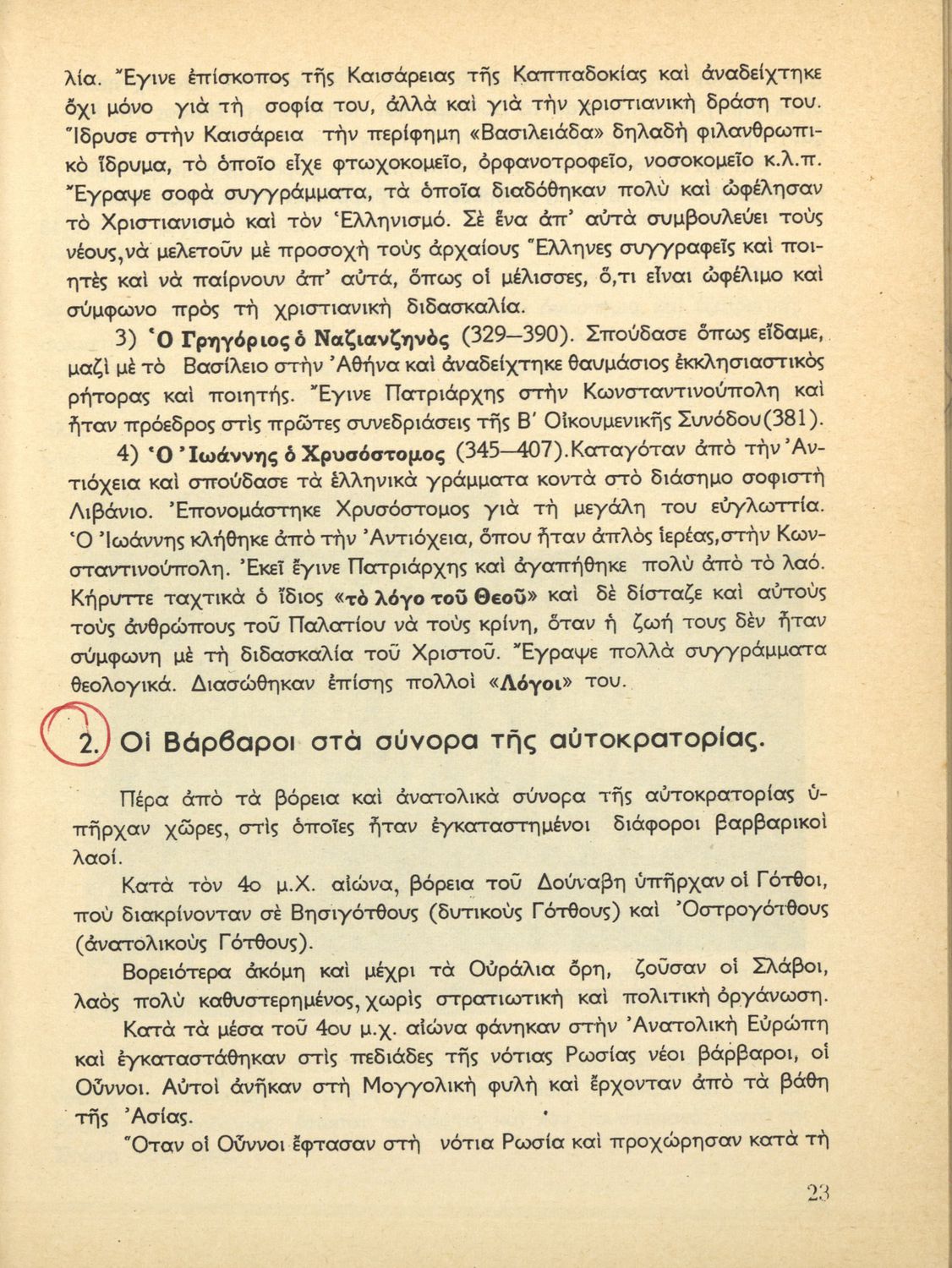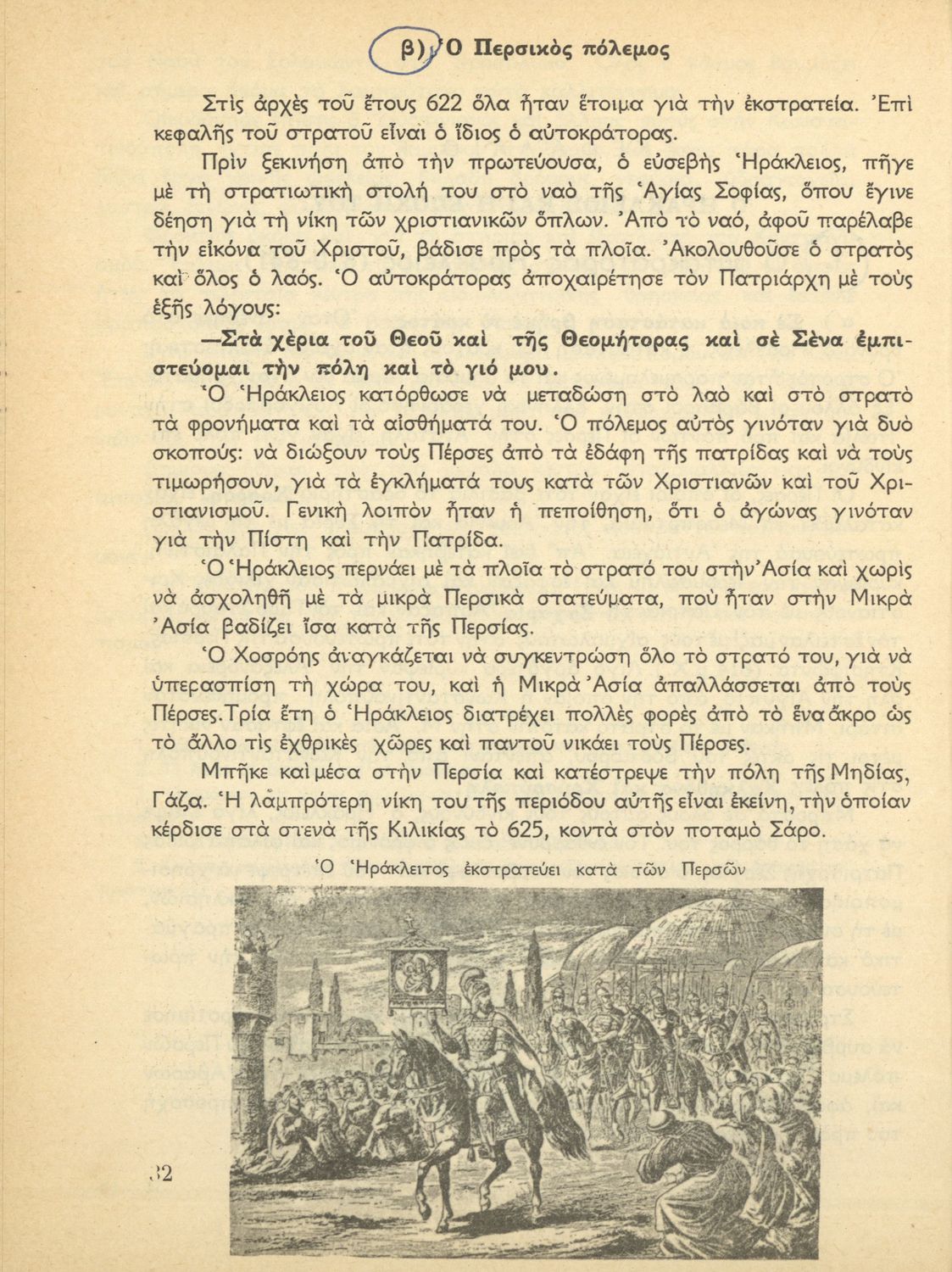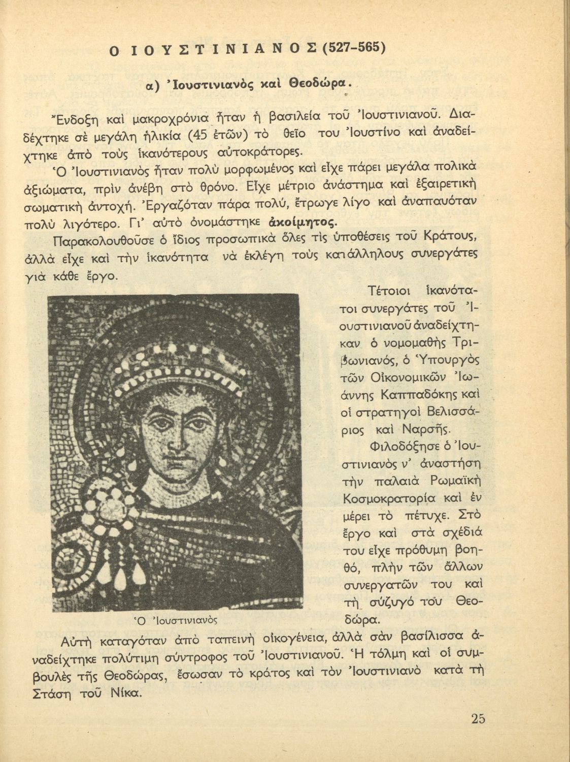 Σχολικό εγχειρίδιο για το μάθημα της Ιστορίας στους μαθητές του Δημοτικού. Αναφέρεται στα χρόνια της Βυζαντινής Αυτοκρατορίας μέχρι και την άλωση της Πόλης. Το τελευταίο κεφάλαιο αναφέρεται στα επιτεύγματα της