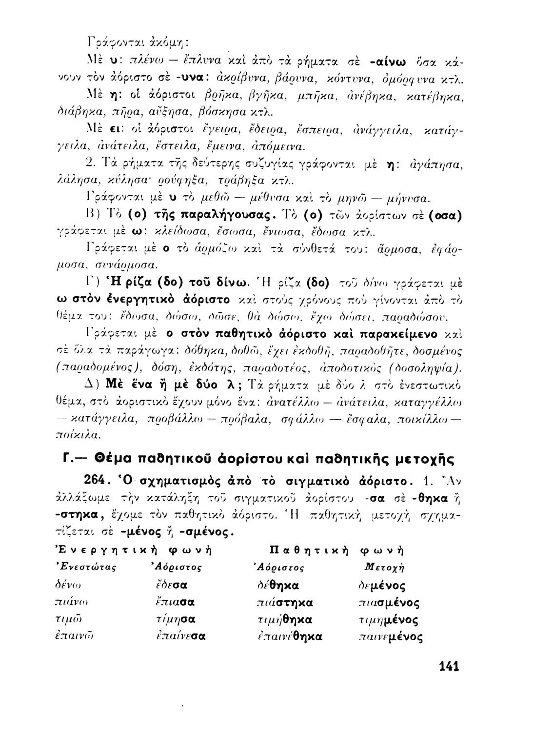 Σχολικό εγχειρίδιο Γραμματικής για τη ΣΤ΄ Δημοτικού και τις τάξεις της Μέσης εκπαίδευσης. Περιέχει τη διδασκαλία της Γραμματικής της δημοτικής και για τους παιδαγωγούς αλλά και τους μαθητές.