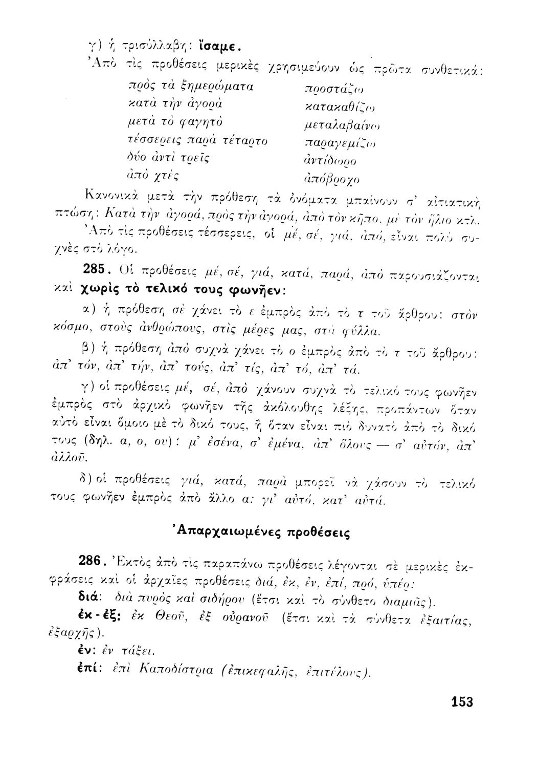 Σχολικό εγχειρίδιο γραμματικής για τους μαθητές της Ε΄ και ΣΤ΄ τάξης του Δημοτικού. Περιέχει τη διδασκαλία της γραμματικής της καθαρεύουσας με κανόνες και παραδείγματα.