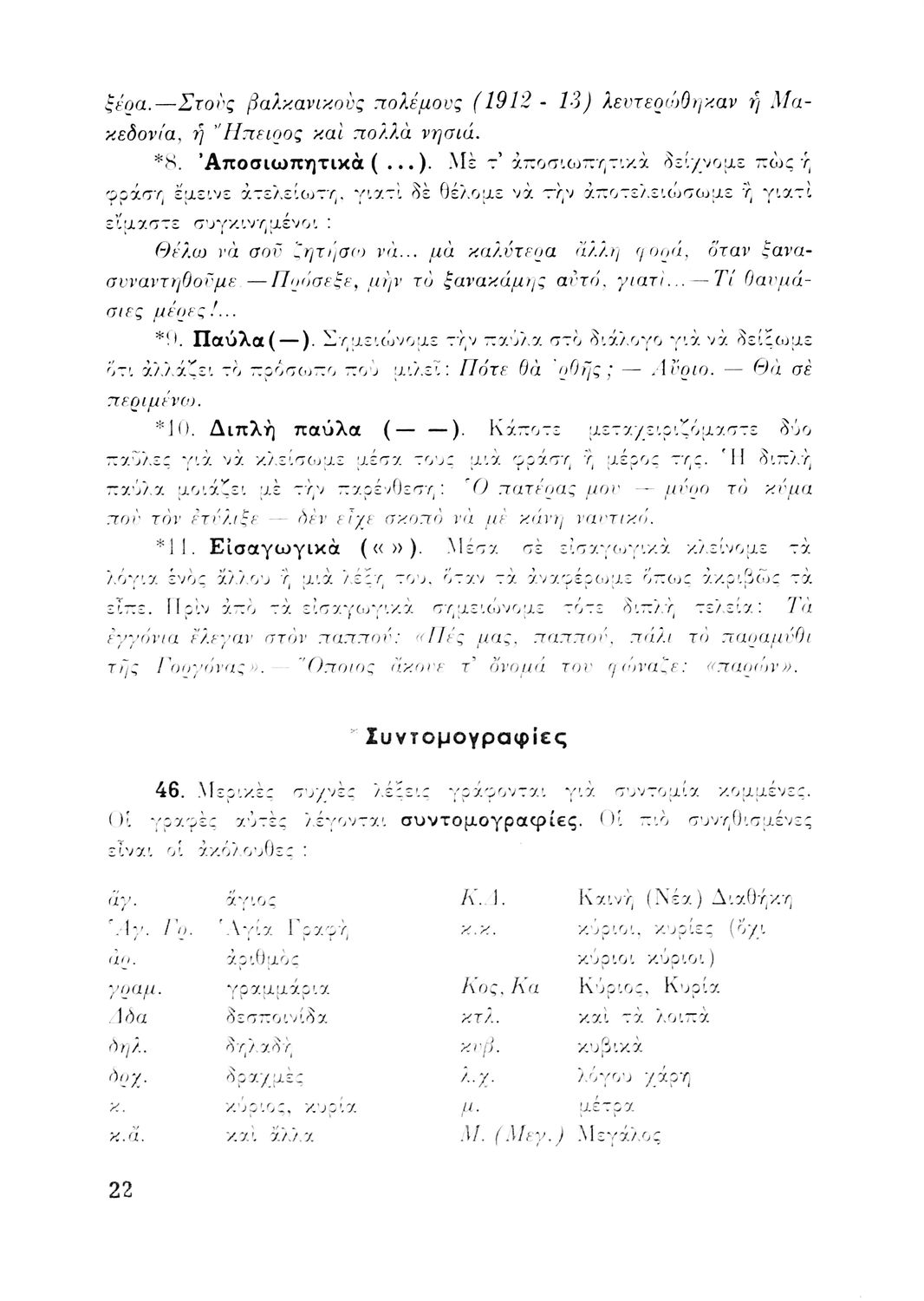 Σχολικό εγχειρίδιο γραμματικής για τους μαθητές της Ε΄ και ΣΤ΄ τάξης του Δημοτικού. Περιέχει τη διδασκαλία της γραμματικής της καθαρεύουσας με κανόνες και παραδείγματα.
