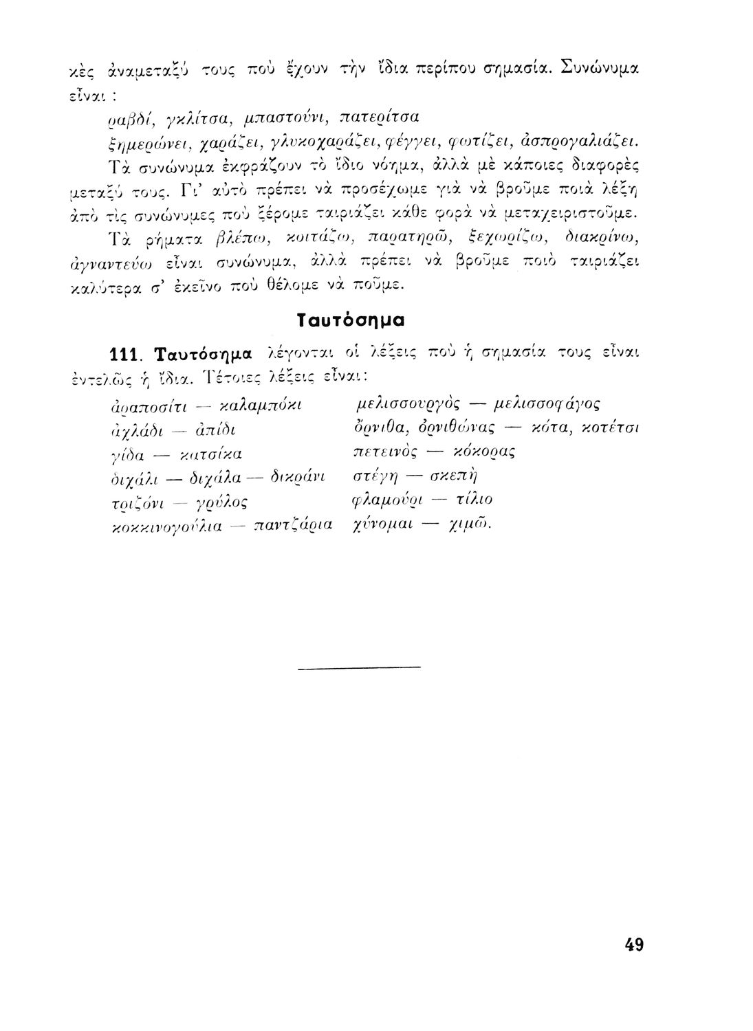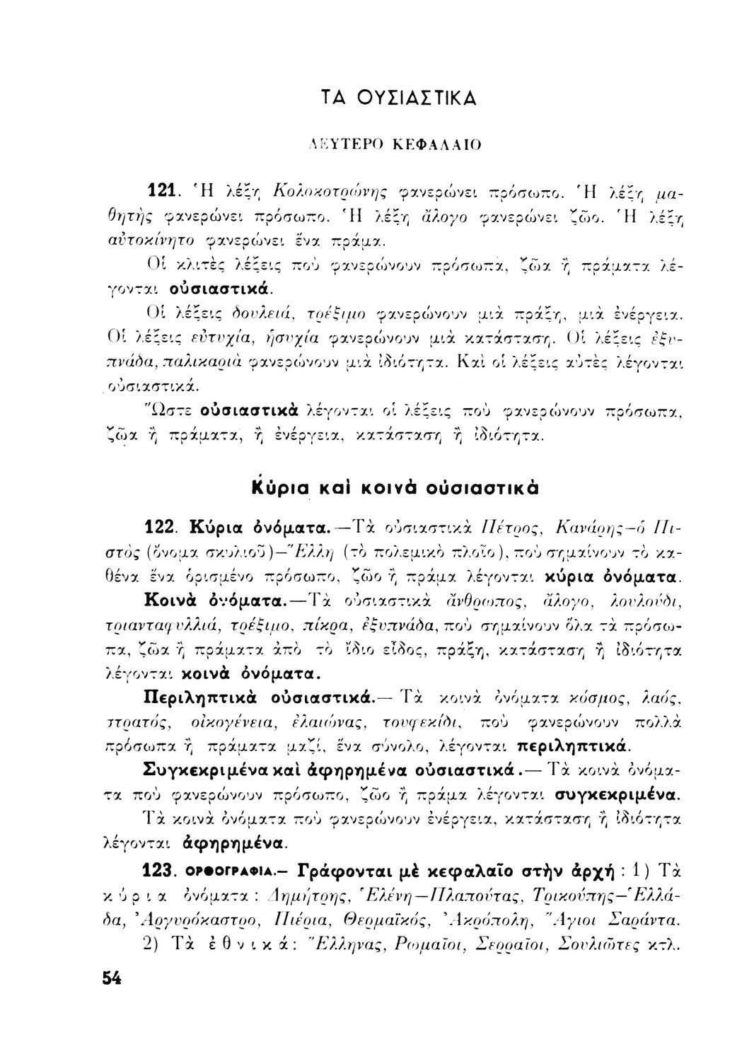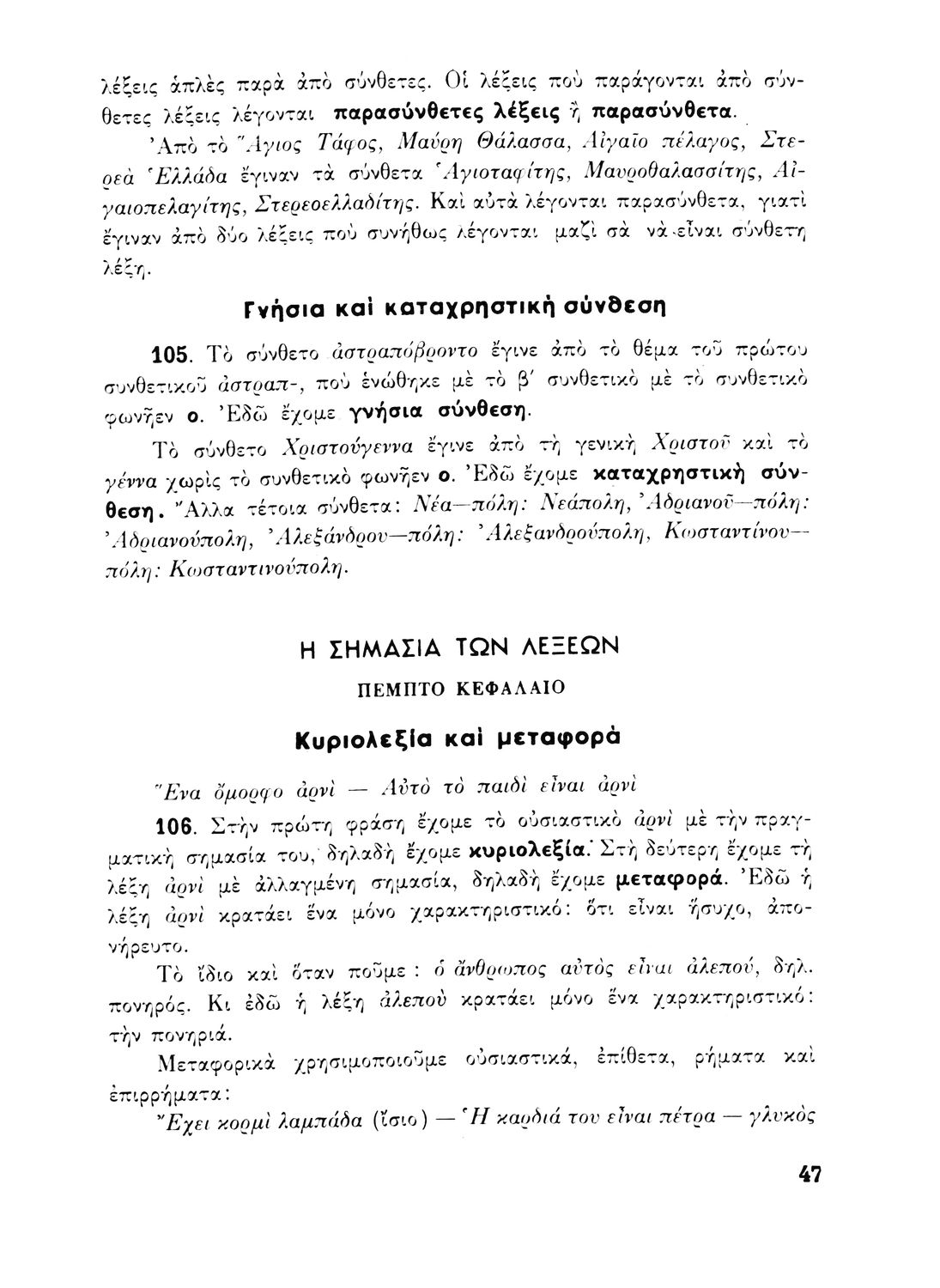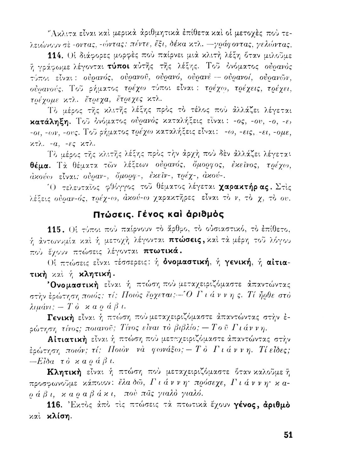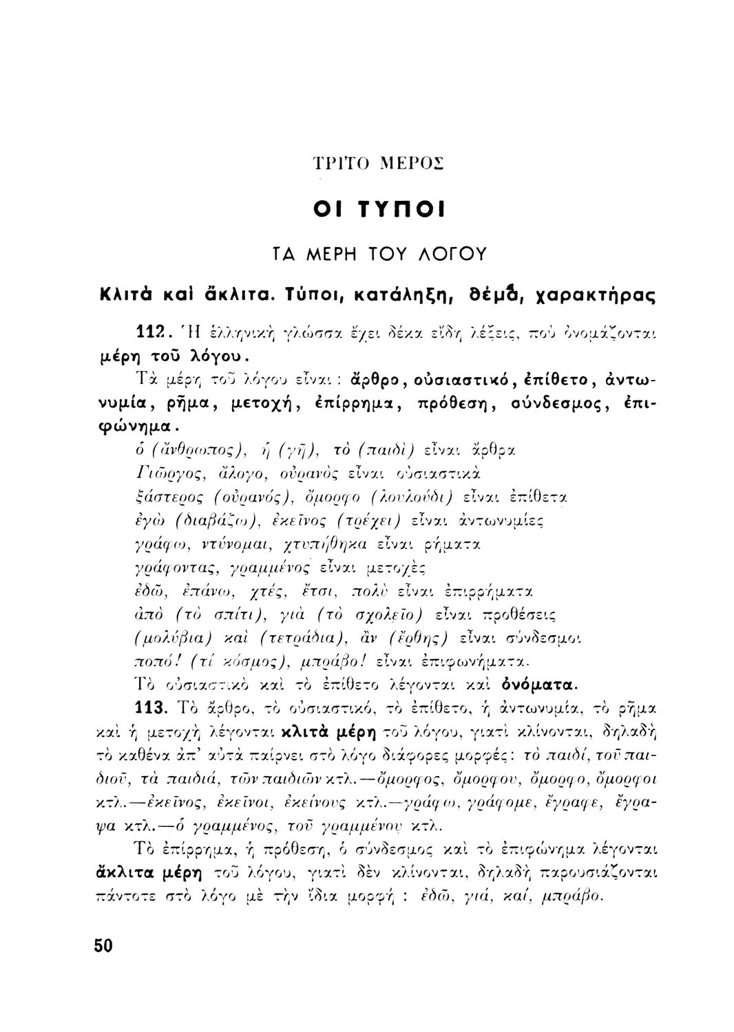 Σχολικό εγχειρίδιο Γραμματικής για τη ΣΤ΄ Δημοτικού και τις τάξεις της Μέσης εκπαίδευσης. Περιέχει τη διδασκαλία της Γραμματικής της δημοτικής και για τους παιδαγωγούς αλλά και τους μαθητές.