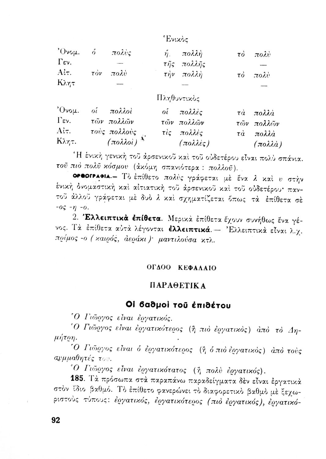 LDR 01066 2200205 4500 035 ## _a01-17126 040 ## _aΙνστιτούτο Εκπαιδευτικής Πολιτικής 041 ## _ael 100 ## _aΜαν. Α. Τριανταφυλλίδης 110 ## _a17126 245 0# _aΜικρή Νεοελληνική Γραμματική . Δημοτικού Σχολείου 250 ## _a1η Έκδοση 260 ## _aΑθήνα _bΟργανισμός Εκδόσεως Διδακτικών Βιβλίων _c1965 300 ## _a158 520 ## _aΣχολικό εγχειρίδιο Γλώσσας Δημοτικό που περιλαμβάνει ανάλυση των γραμματικών φαινομένων με ευσύνοπτο και εύληπτο τρόπο για τους μαθητές. 522 ## _aΕλλάδα 546 ## _aΑπλή καθαρεύουσα 563 ## _aΣκληρό Εξώφυλλο 583 ## _a1301/8-7-1965 _c1965 650 #4 _aΕπίθετα _aΕπιρρήματα _aΜετοχές _aΟυσιαστικά _aΠροθέσεις _aΡήματα