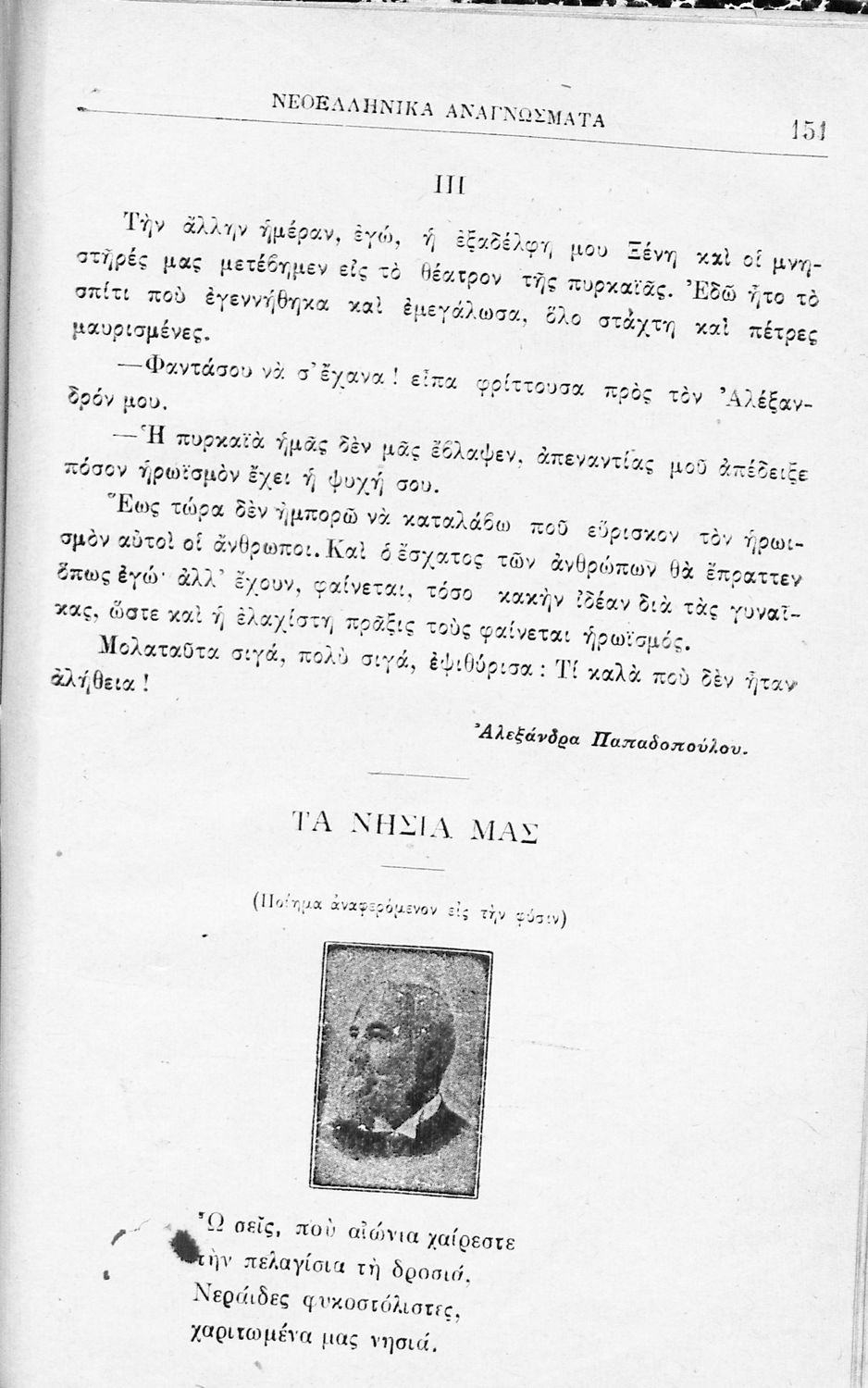 Σχολικό εγχειρίδιο Νέων Ελληνικών Γ' Ελληνικού και Α' Αστικού Σχολείου που περιλαμβάνει κείμενα Ελλήνων συγγραφέων εμπνευσμένα από την σύγχρονη ελληνική ιστορία, τη βυζαντινή ιστορία, την ελληνική φύση και τη ...