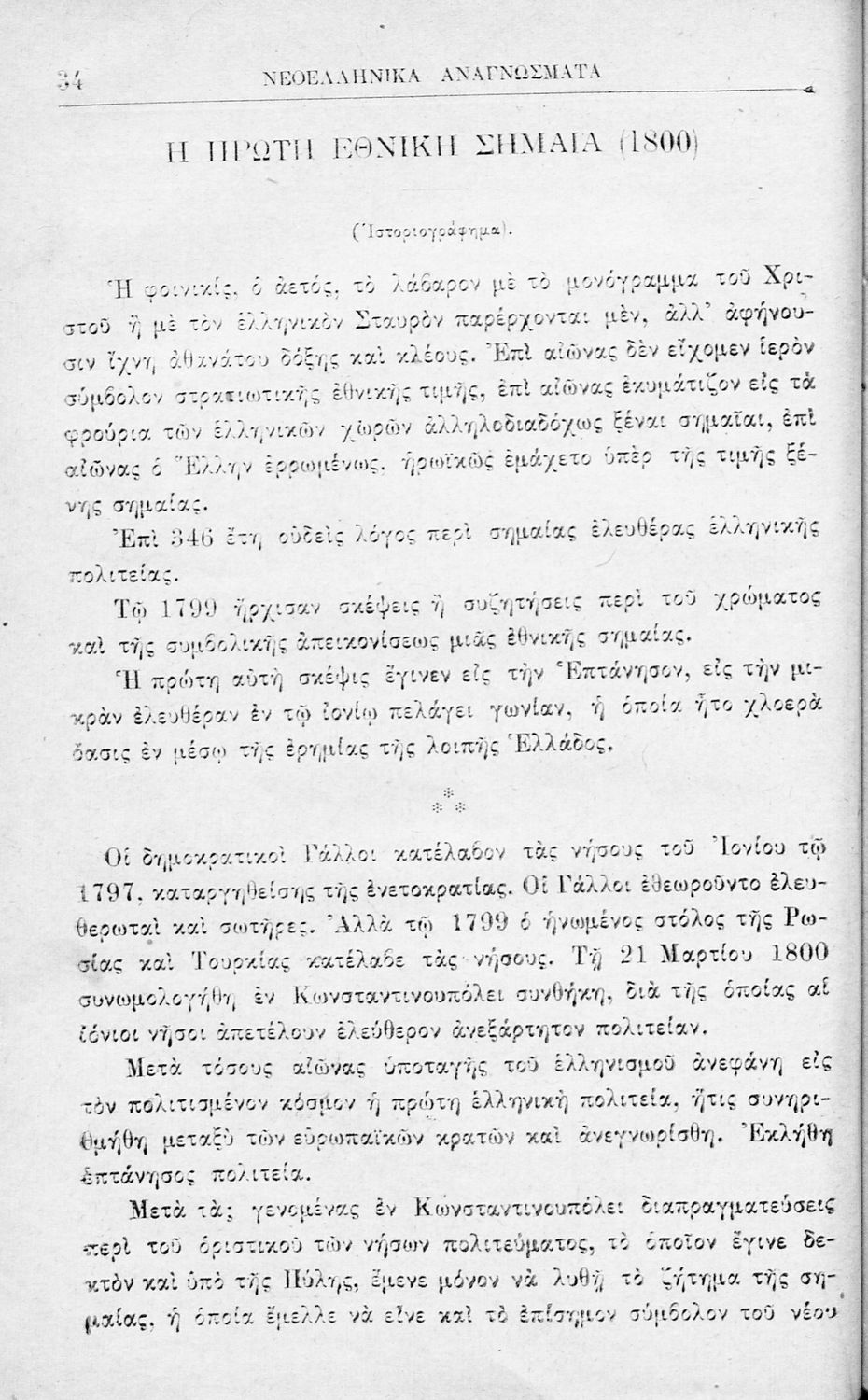 Σχολικό εγχειρίδιο Νέων Ελληνικών Γ' Ελληνικού και Α' Αστικού Σχολείου που περιλαμβάνει κείμενα Ελλήνων συγγραφέων εμπνευσμένα από την σύγχρονη ελληνική ιστορία, τη βυζαντινή ιστορία, την ελληνική φύση και τη ...