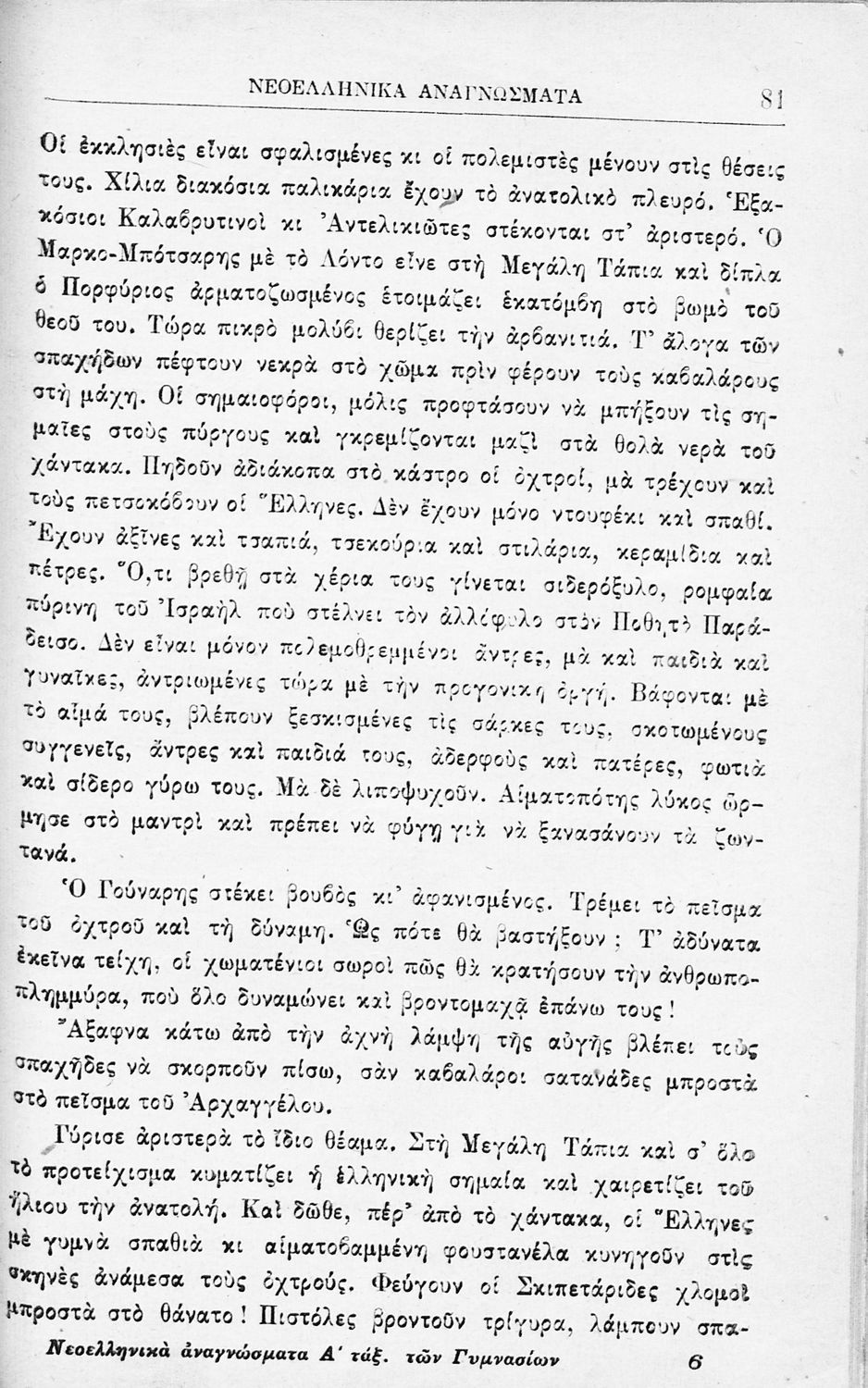 Νεοελληνικά αναγνώσματα διά τους μαθητάς της Α΄ τάξεως των τετραταξίων Γυμνασίων και της αντιστοίχου τάξεως των λοιπών σχολείων της Μέσης Εκπαιδεύσεως