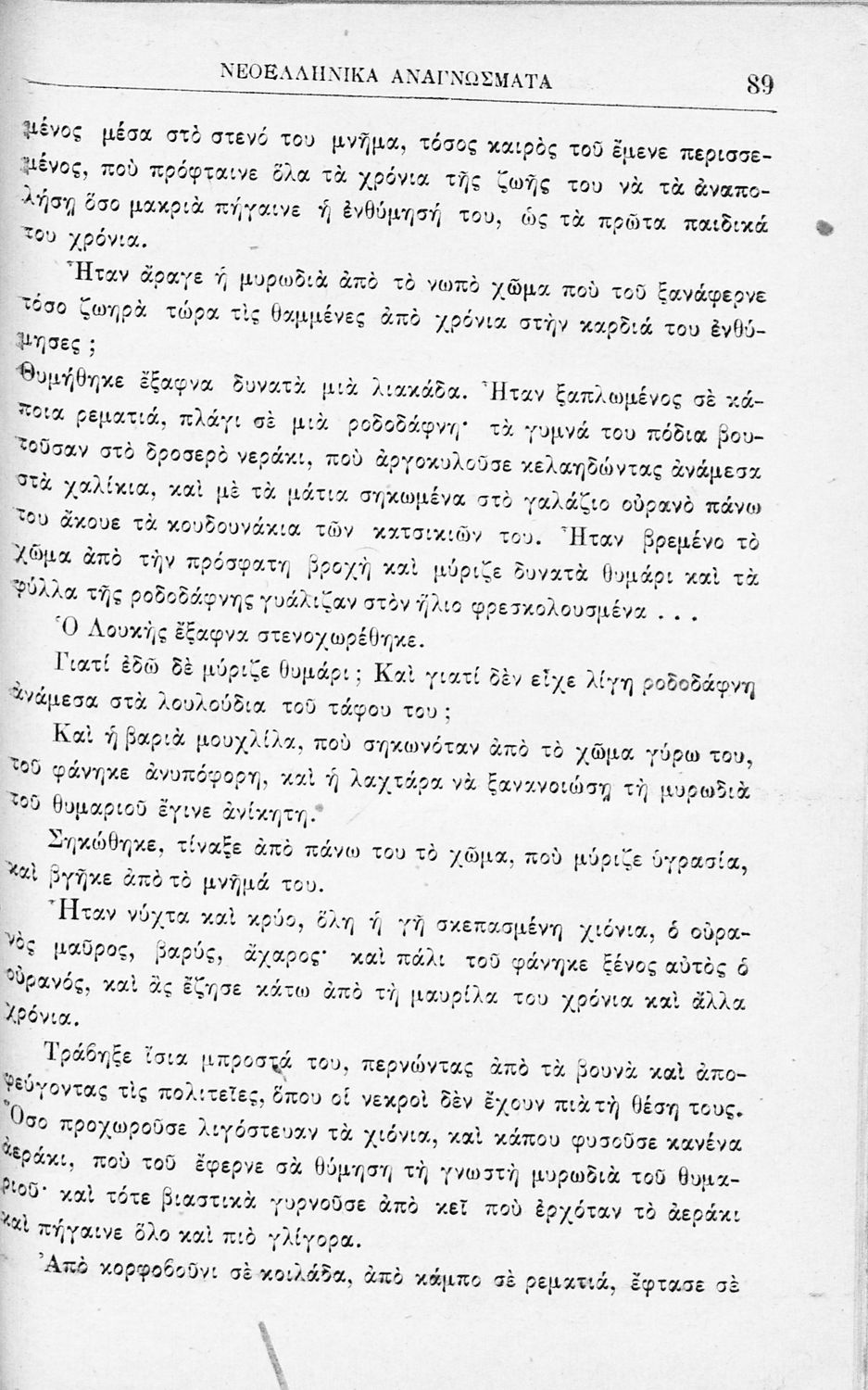 Σχολικό εγχειρίδιο για την Β΄ Γυμνασίου και την Γ΄ Αστικού Θηλέων για το μάθημα των Νέων Ελληνικών. Το εγχειρίδιο αποτελείται από κείμενα πεζού λόγου, επικολυρικά ποιήματα, ωδές, ηθογραφικά διηγήματα, ρητορικά