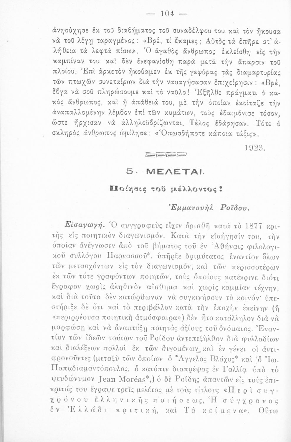 Σχετιζόμενοι όροι:  Κρυστάλλης, Παλαμάς, Σολωμός, Δροσίνης