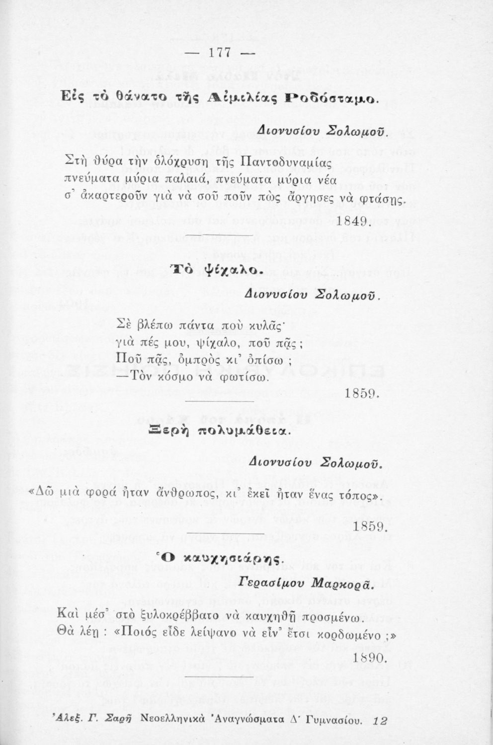 Σχετιζόμενοι όροι:  Κρυστάλλης, Παλαμάς, Σολωμός, Δροσίνης