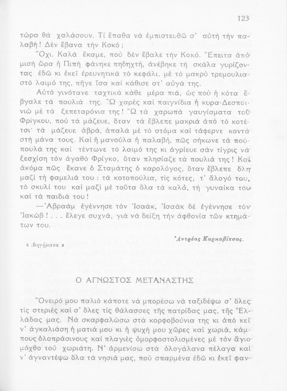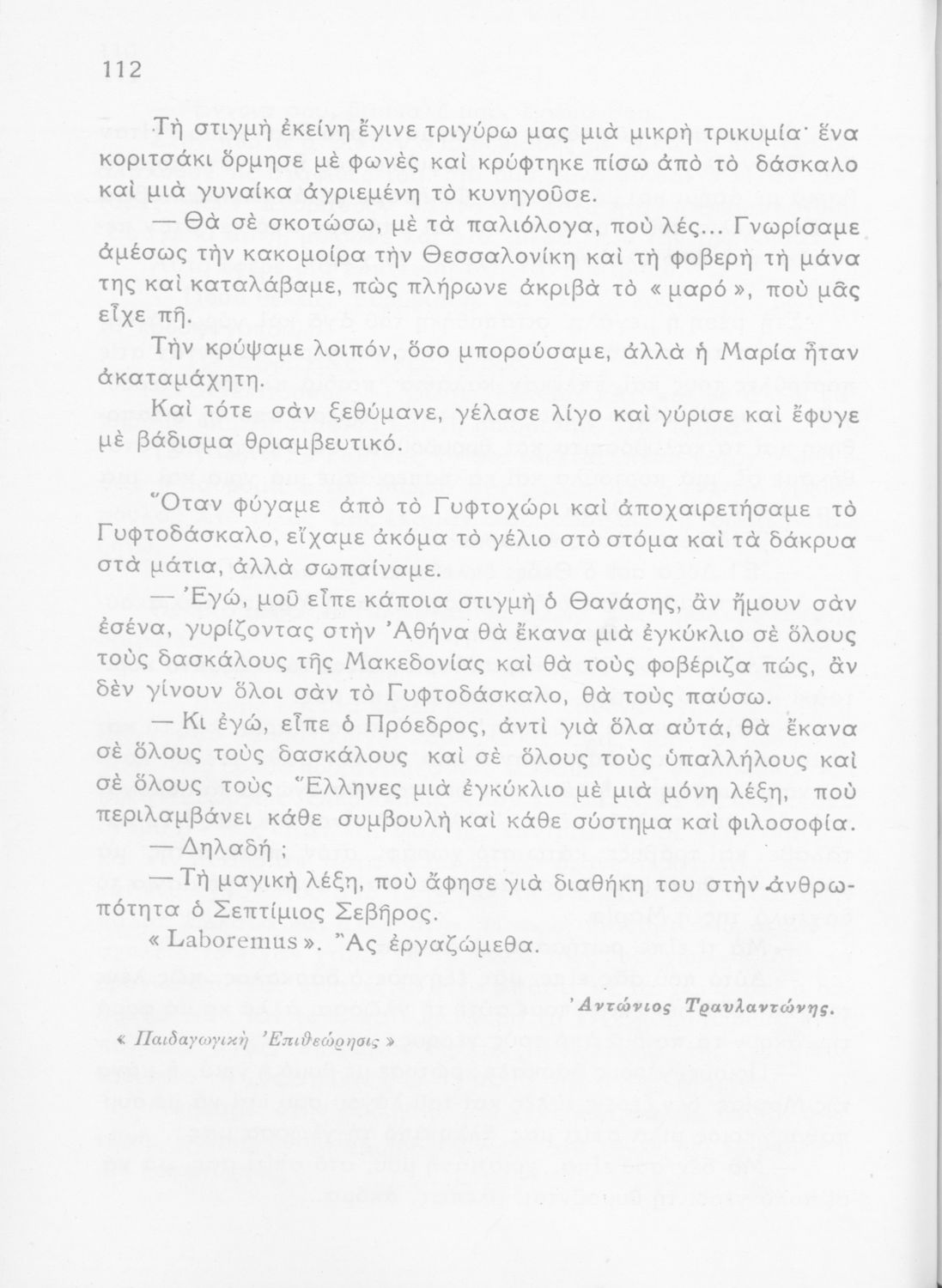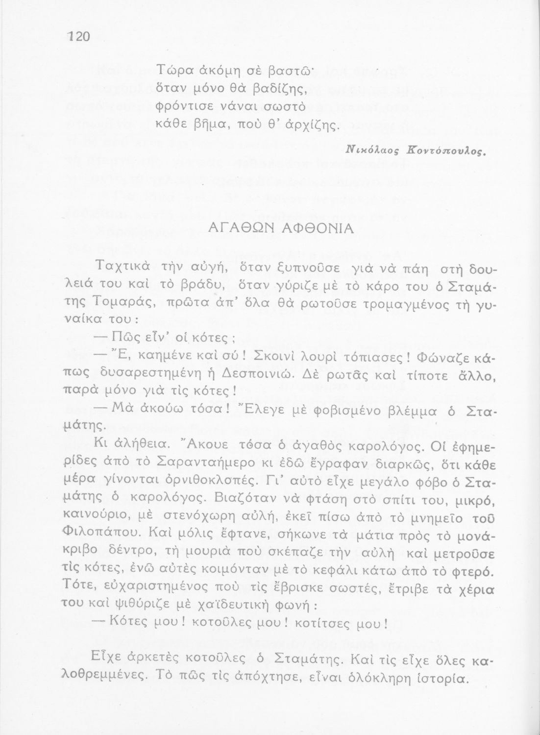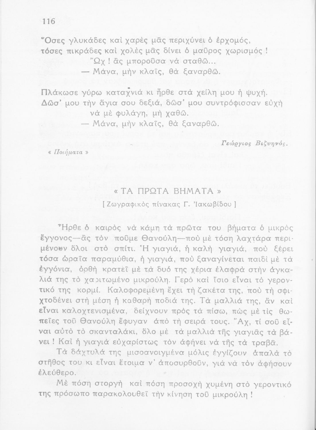 Σχολικό εγχειρίδιο Νέων Ελληνικών Δ΄ Γυμνασίου και Β΄ Αστικού Σχολείου που περιέχει πεζά και ποιήματα Ελλήνων συγγραφέων εμπνευσμένα από τη θρησκευτική και κοινωνική ζωή, την ελληνική μυθολογία, την αρχαία και σύγχρονη ελληνική ιστορία, και την ελληνική φύση. Περιέχει παράρτημα με μεταφράσεις κειμένων αρχαίων ελλήνων συγγραφέων και αποσπάσματα από τη μεσαιωνική γραμματεία, βιογραφίες των συγγραφέων και λεξιλόγιο.