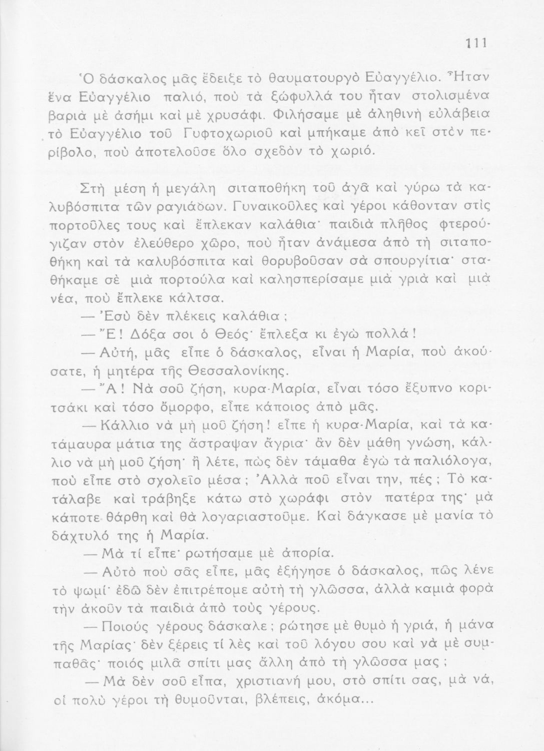 Σχολικό εγχειρίδιο Νέων Ελληνικών Γ΄ Γυμνασίου και Α' Αστικού Σχολείου που περιέχει πεζά και ποιήματα Ελλήνων συγγραφέων εμπνευσμένα από τη θρησκευτική και κοινωνική ζωή, την ελληνική μυθολογία, την αρχαία και