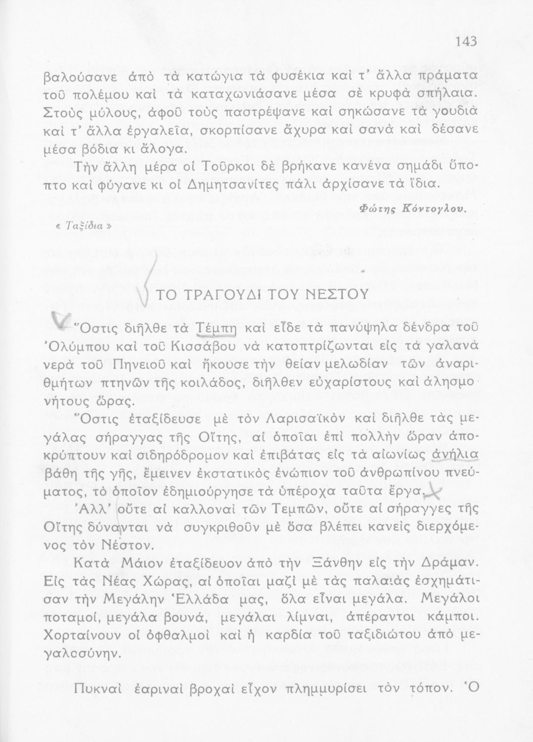 Σχολικό εγχειρίδιο Νέων Ελληνικών Γ΄ Γυμνασίου και Α' Αστικού Σχολείου που περιέχει πεζά και ποιήματα Ελλήνων συγγραφέων εμπνευσμένα από τη θρησκευτική και κοινωνική ζωή, την ελληνική μυθολογία, την αρχαία και