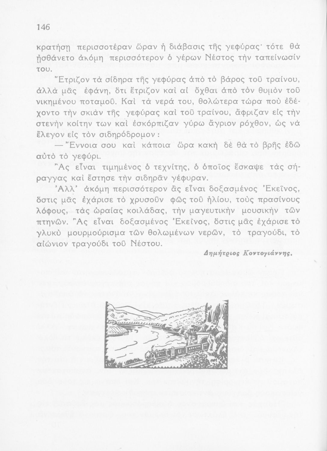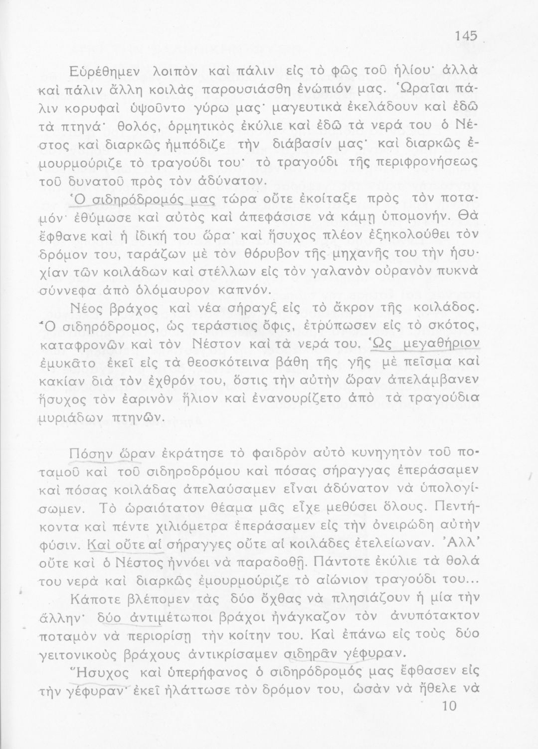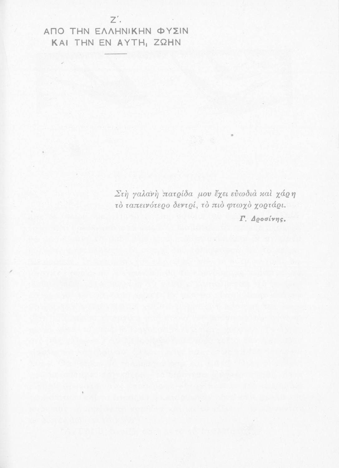 Σχολικό εγχειρίδιο Νέων Ελληνικών Δ΄ Γυμνασίου και Β΄ Αστικού Σχολείου που περιέχει πεζά και ποιήματα Ελλήνων συγγραφέων εμπνευσμένα από τη θρησκευτική και κοινωνική ζωή, την ελληνική μυθολογία, την αρχαία και σύγχρονη ελληνική ιστορία, και την ελληνική φύση. Περιέχει παράρτημα με μεταφράσεις κειμένων αρχαίων ελλήνων συγγραφέων και αποσπάσματα από τη μεσαιωνική γραμματεία, βιογραφίες των συγγραφέων και λεξιλόγιο.